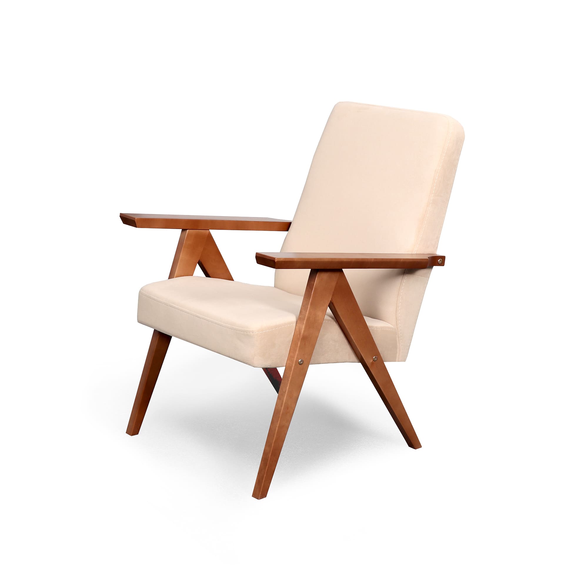 Кресло имеет простой и элегантный силуэт. Оно выполнено в уникальном ретро дизайне и доступно в нескольких цветовых вариантах, что позволяет выбрать наиболее подходящее для вашего дома.