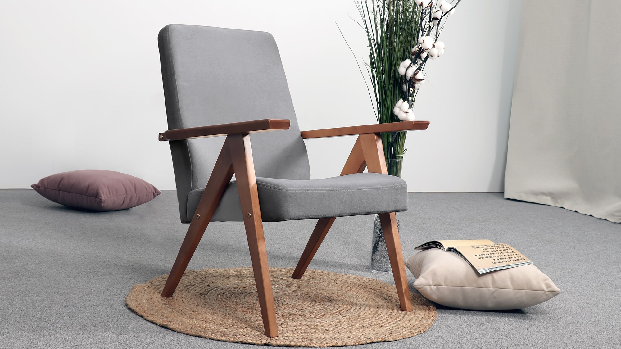 Кресло имеет простой и элегантный силуэт. Оно выполнено в уникальном ретро дизайне и доступно в нескольких цветовых вариантах, что позволяет выбрать наиболее подходящее для вашего дома.
