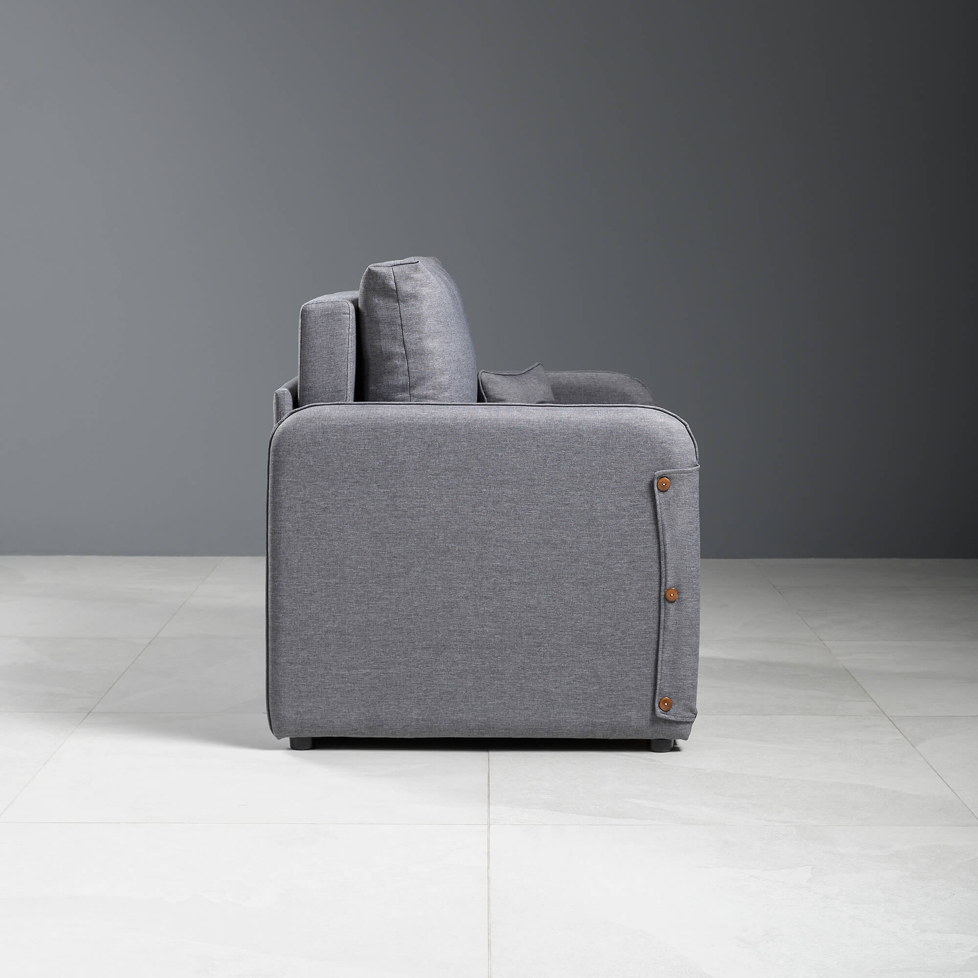 Подушки со съемным чехлом обеспечат уровень комфорта, а рогожка, из которого выполнена обивка, сохранит первоначальный вид и цвет на года. Прочные механизмы превращения интерьерного кресла в кровать обеспечат легкую трансформацию. Спинка кресла с подлокотниками выполнена в основной ткани это моментальное зонирование пространства.