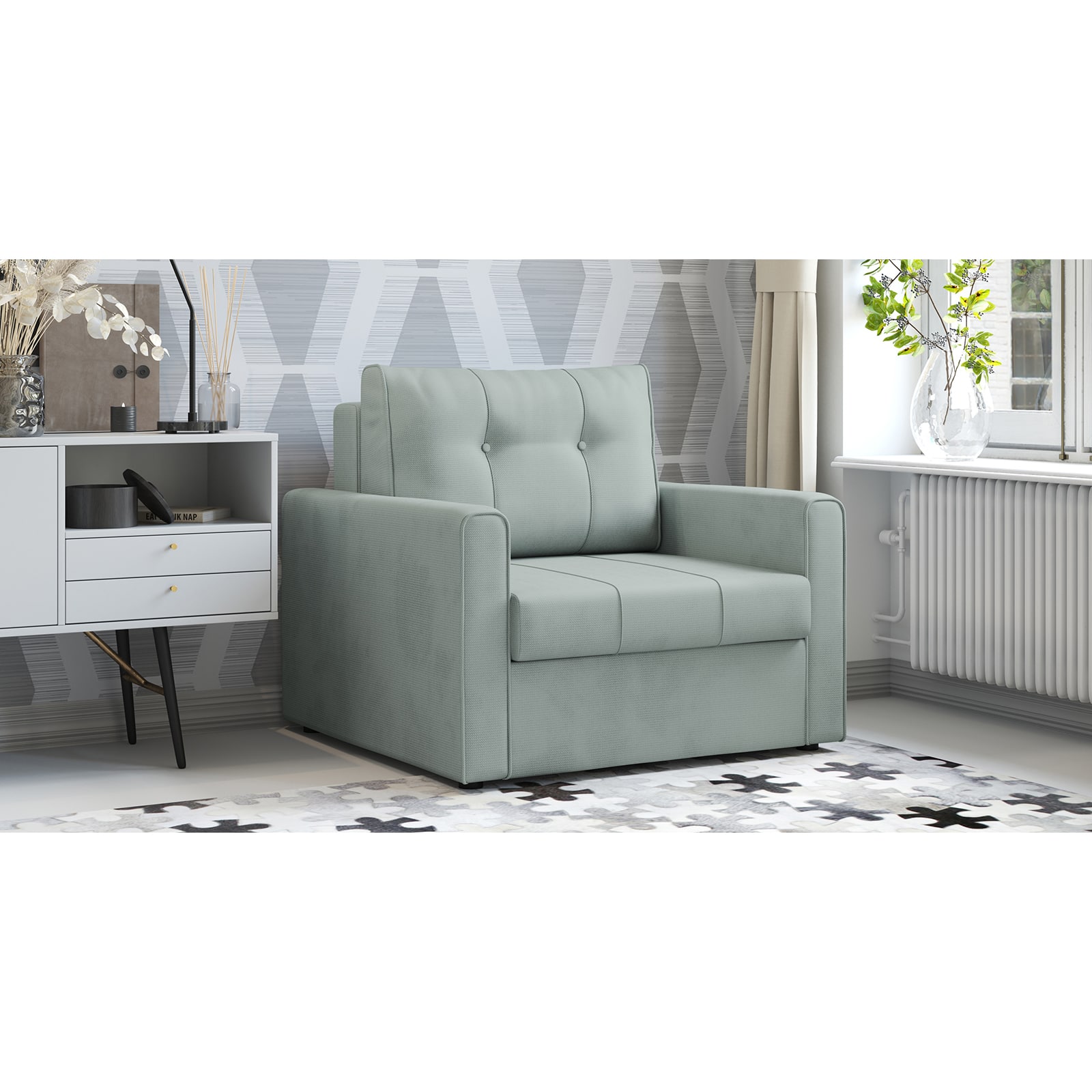 Кресло-кровать «Лео» – компактное современное решение для гостиных, квартир-студий, детских и подростковых комнат. Ровное и комфортное спальное место для взрослого, подростка или ребенка.