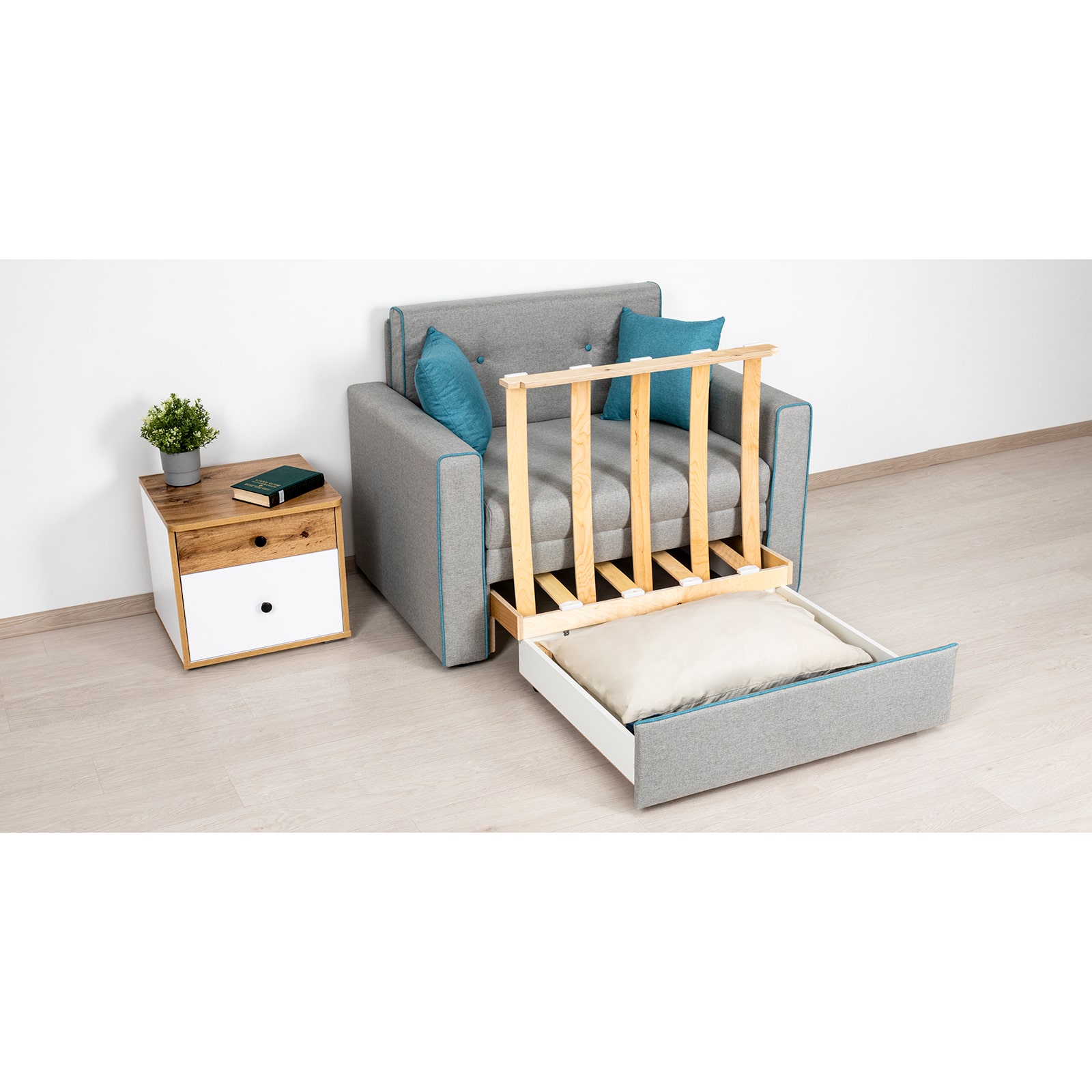 Кресло-кровать "Найс" - компактное современное решение для гостиных, квартир-студий, детских и подростковых комнат. Может использоваться в качестве постоянного спального места для детей и подростков или гостевого спального места взрослого.
