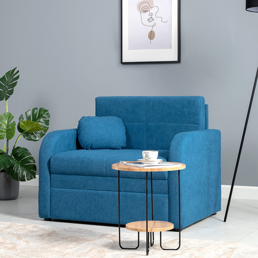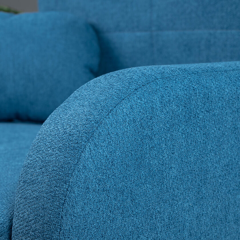 Коллекция выполнена в современном минималистичном стиле с мягкой обивкой из износостойкой ткани и декоративной стежкой, подчеркивающей геометрию форм. Механизм трансформации обеспечивает дополнительное спальное место, делая мебель не только эстетичной, но и максимально функциональной для небольших пространств.