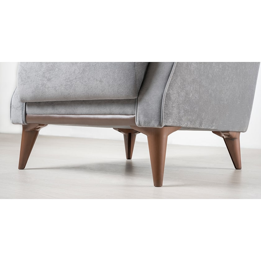 Выполнен в модном мягком велюре ROMANCE оригинальной фактуры. Ткань легко чистится, устойчива к зацепам, обладает повышенной износостойкостью. Благодаря особой технологии гладкого крашения Frozen Flower на поверхности ткани присутствует легкий краш–эффект, подчеркивающий невероятно мягкую фактуру ткани.