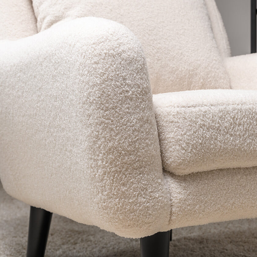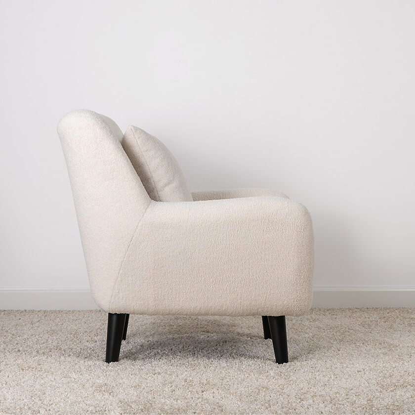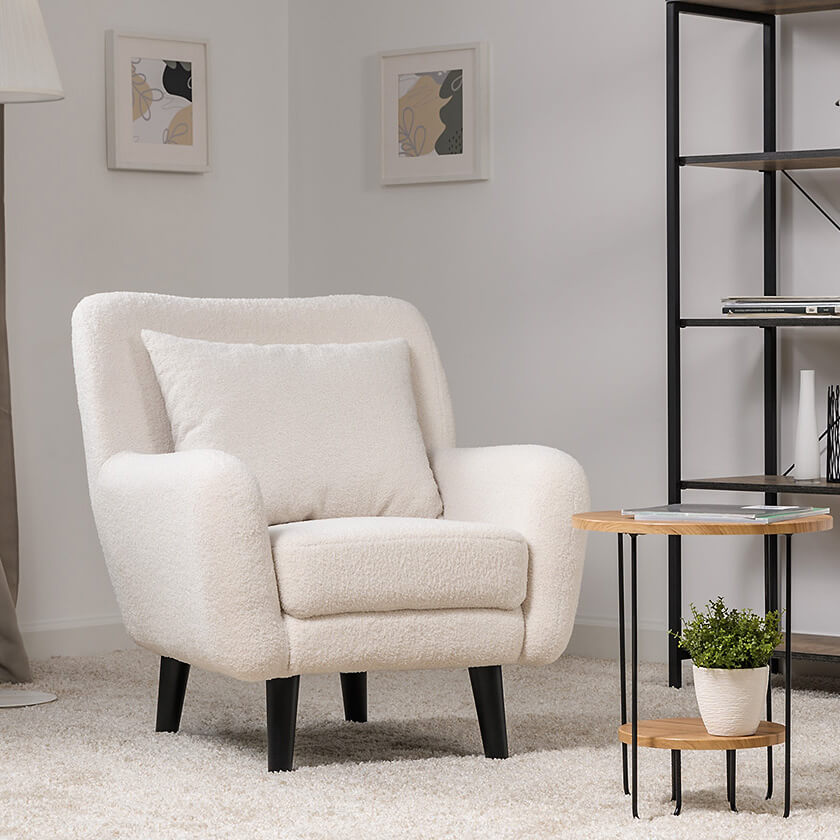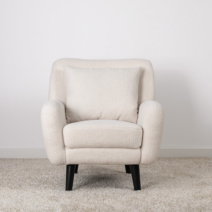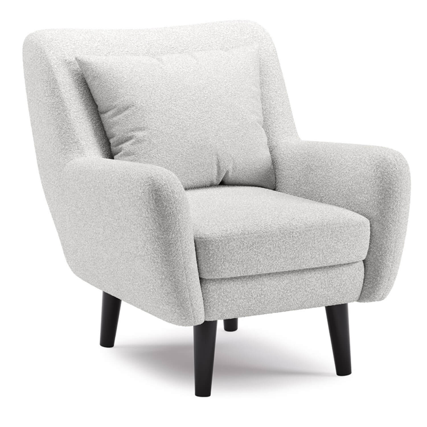 Кресло Шон станет вашим любимым местом для отдыха. Мягкое кресло с удобной спинкой даст вам расслабиться и отдохнуть. Благодаря небольшим размерам кресло подходит для многих современных квартир-студий или небольших комнат. Ткань букле делает кресло особенно уютным и мягким. Приспинная подушка в цвете кресла.