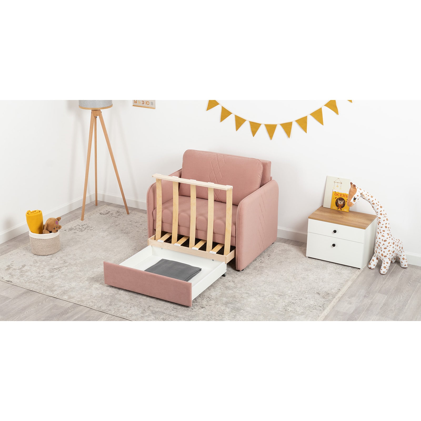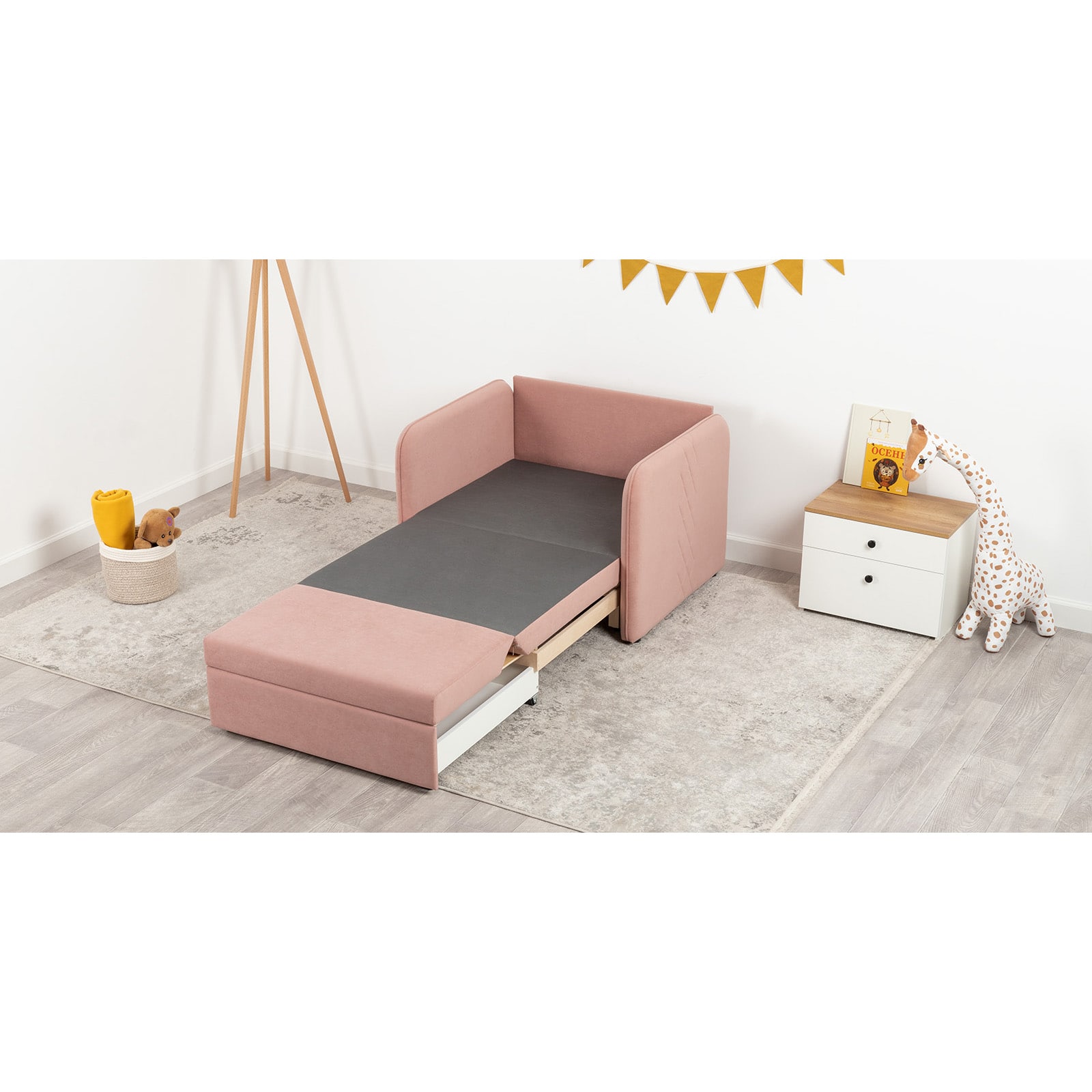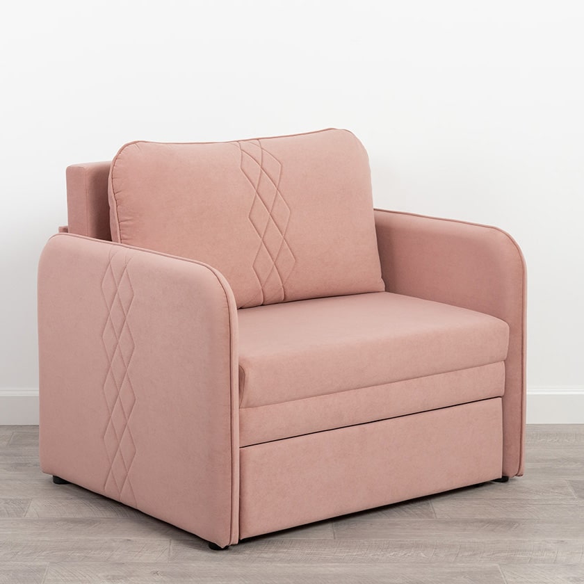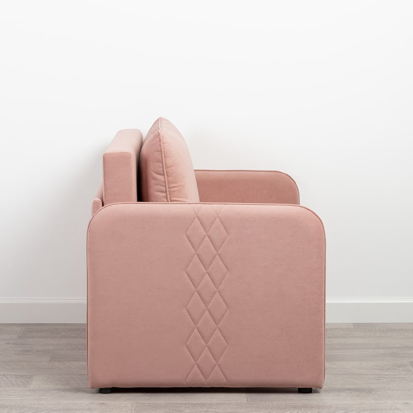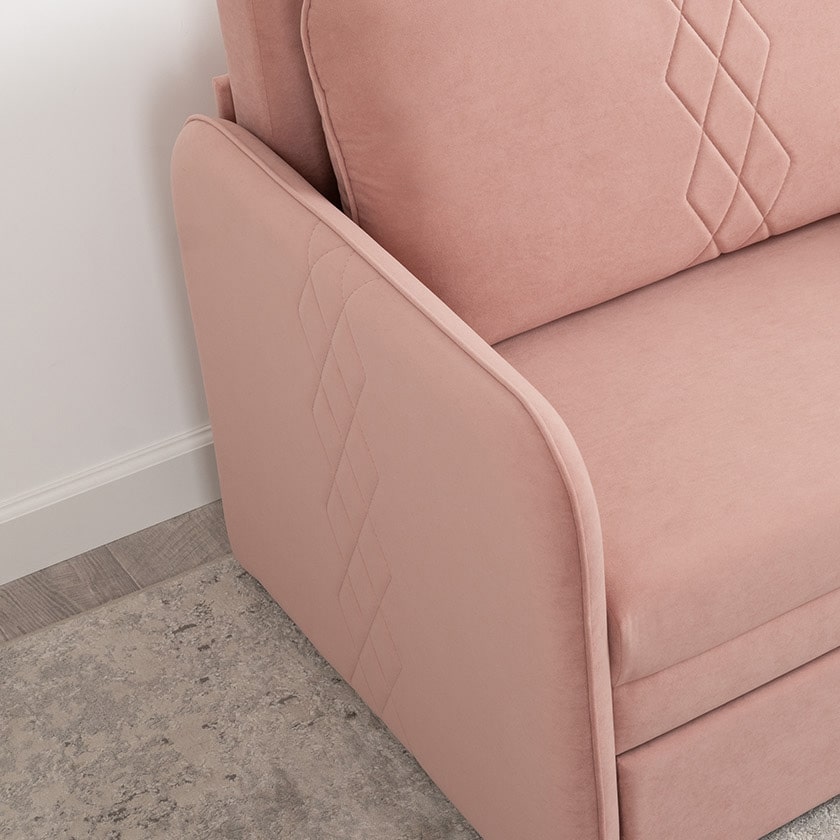 Стильный компактный диван для детской и гостиной. При своих скромных размерах он трансформируется в полноценное спальное место для детей и подростков. Лаконичный дизайн в виде декоративной отстрочки подчеркивает фактуру велюра, а небольшие размеры позволят разместить его в любом пространстве.