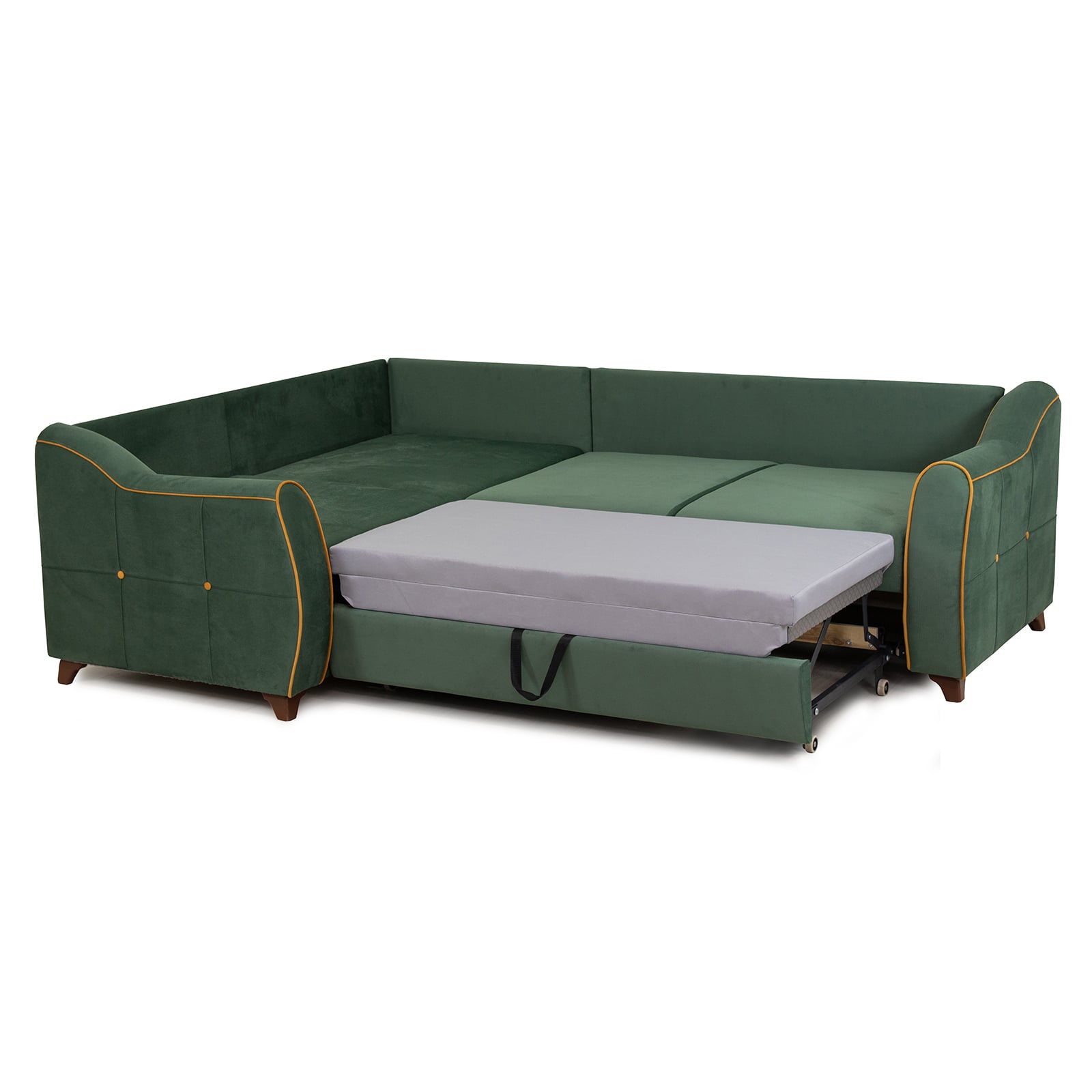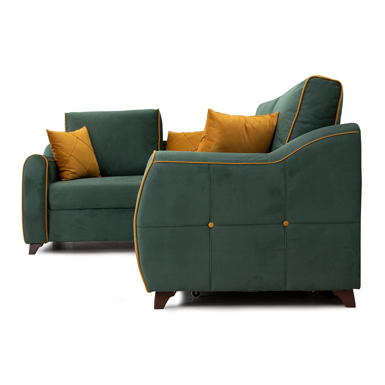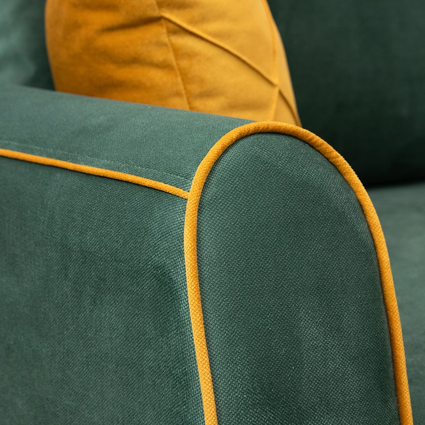 Декор: декоративный кант, пуговицы, отстрочка, утяжка на подушке и подлокотниках.