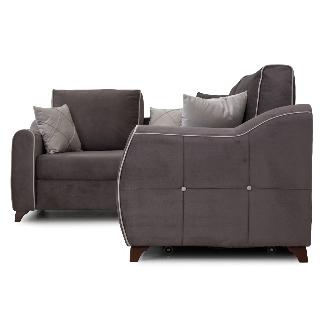 Декор: декоративный кант, пуговицы, отстрочка, утяжка на подушке и подлокотниках.