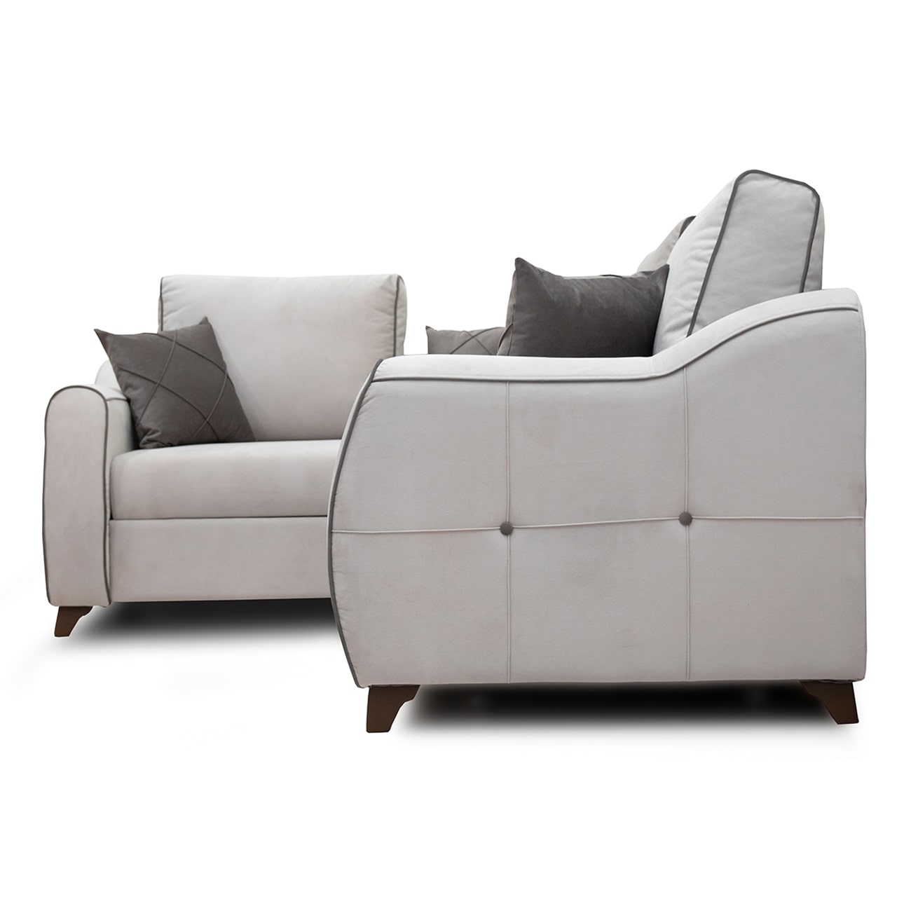Декор: декоративный кант, пуговицы, отстрочка, утяжка на подушке и подлокотниках.