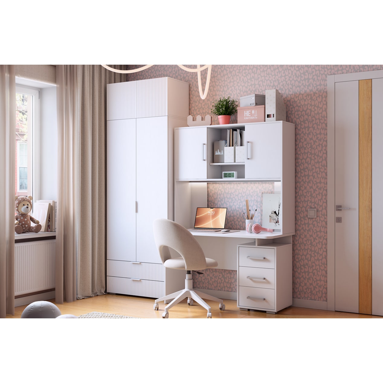 Надстройка Лайт-2 является универсальным дополнением к компьютерным столам. Она оборудована нишами для важных мелочей и шкафами для канцелярии, что делает ее не только практичной, но и стильной.