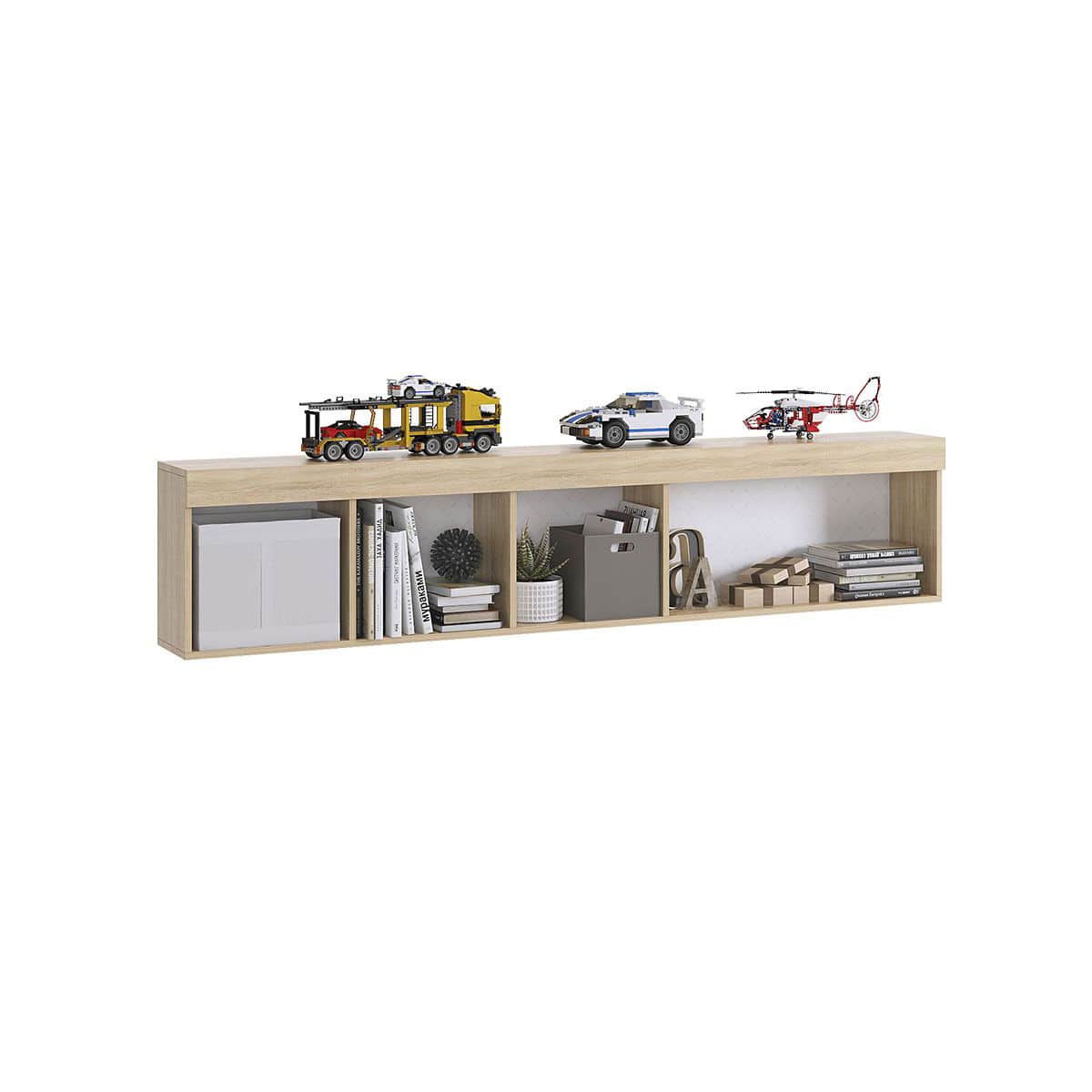 Эта полка будет идеальным дополнением к интерьеру детской комнаты. Оригинальный рисунок на полке сразу привлечет внимание вашего ребенка, а разнообразные полки позволят аккуратно разместить книги, игрушки и другие детские аксессуары.