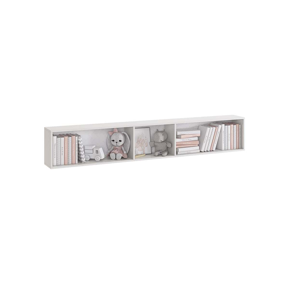 Полка включает в себя одну открытую нишу для игрушек и сувениров, а также две закрытые - идеально подходящие для книг, учебников и других предметов.