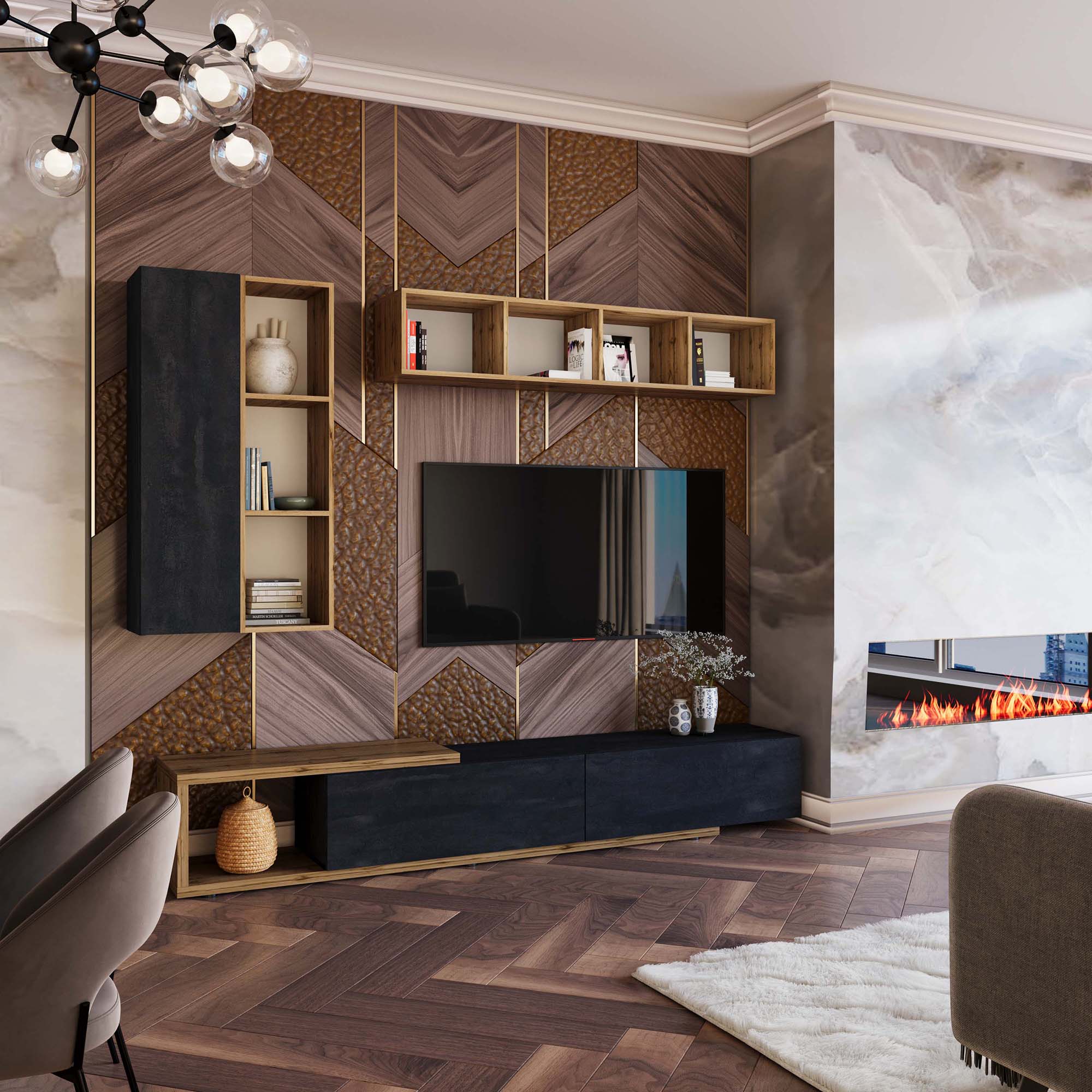 Все элементы гостиной изготовлены из высококачественных материалов, что обеспечивает долговечность и надёжность конструкции.