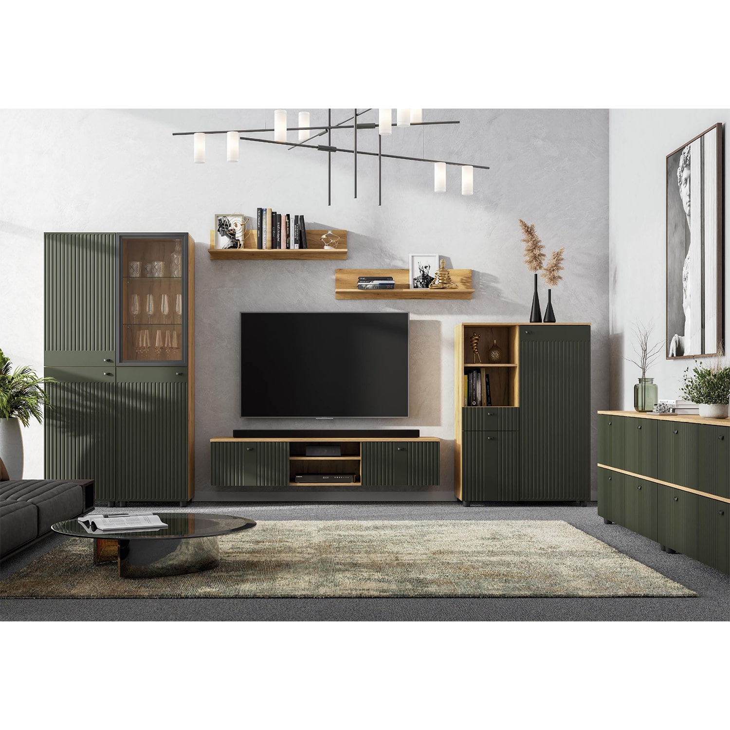 Безупречная фрезеровка фасадов подчеркивает мягкую матовую текстуру фасадов. Все это позволит сделать дизайн гостиной Милан уникальным и запоминающим.