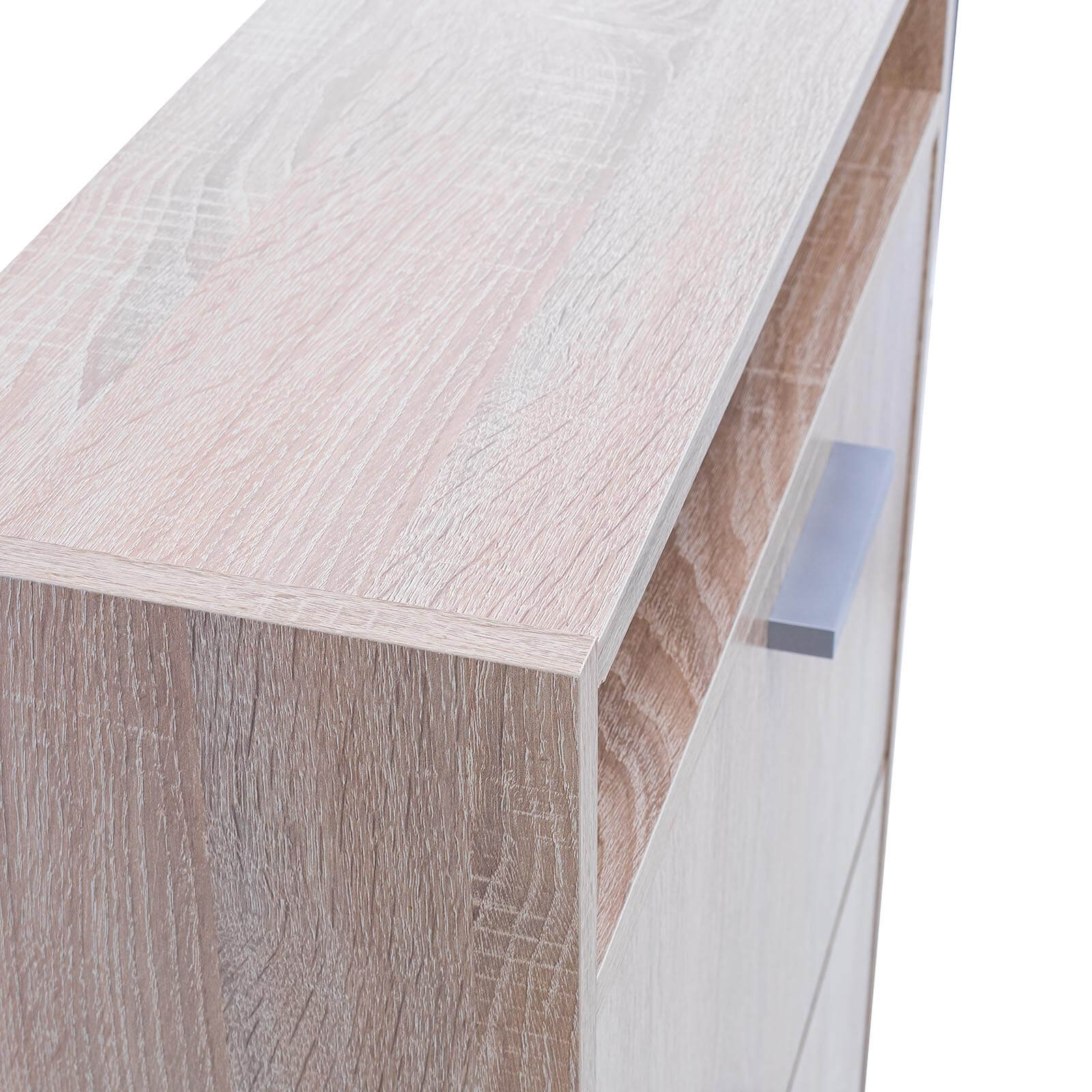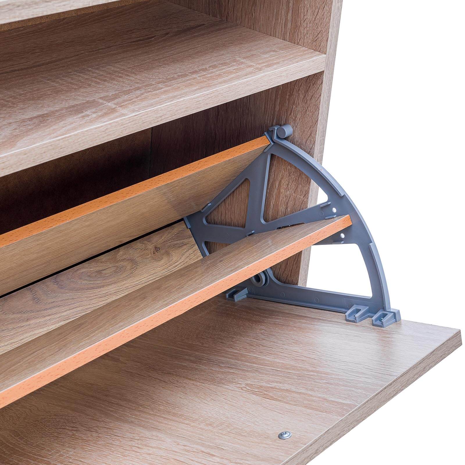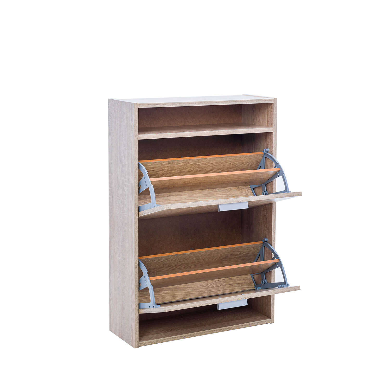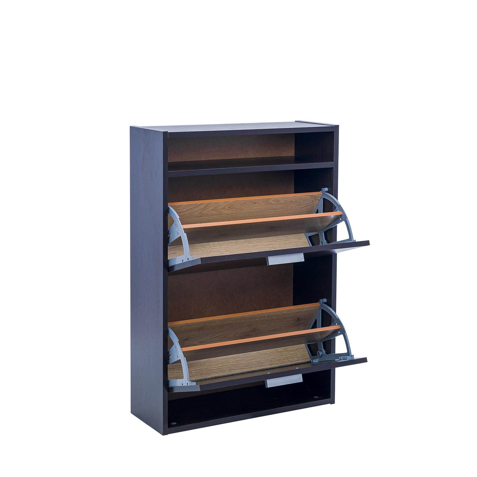 Обувница оснащена двумя отделениями для обуви, что позволяет хранить до 6 пар одновременно. Откидные двери обеспечивают легкий доступ к обуви, а также позволяют экономить пространство в помещении.