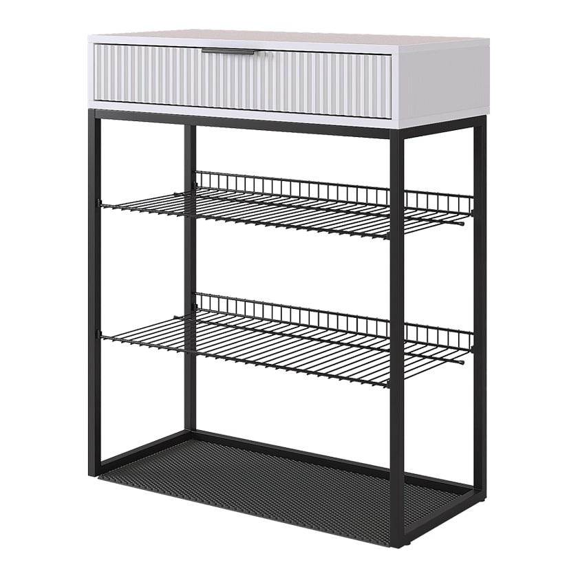 Обувница Вельвет прекрасно сочетает в себе стиль и функциональность. Её дизайн в стиле лофт идеально подходит для современных интерьеров. Выдвижной ящик с шариковыми направляющими обеспечивает бесшумное и плавное открывание, предоставляя удобный доступ к вашим аксессуарам и мелочам. Регулируемые опоры и специальный коврик обеспечивают дополнительный комфорт и защиту.
