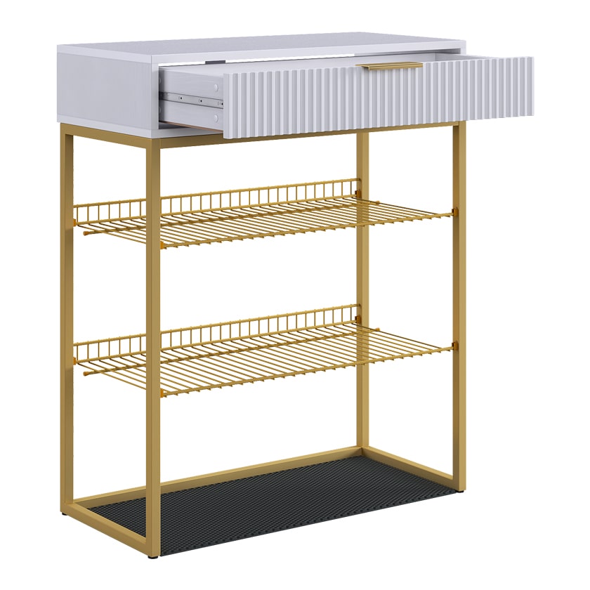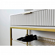 Обувница Вельвет прекрасно сочетает в себе стиль и функциональность. Её дизайн в стиле лофт идеально подходит для современных интерьеров. Выдвижной ящик с шариковыми направляющими обеспечивает бесшумное и плавное открывание, предоставляя удобный доступ к вашим аксессуарам и мелочам. Регулируемые опоры и специальный коврик обеспечивают дополнительный комфорт и защиту.