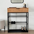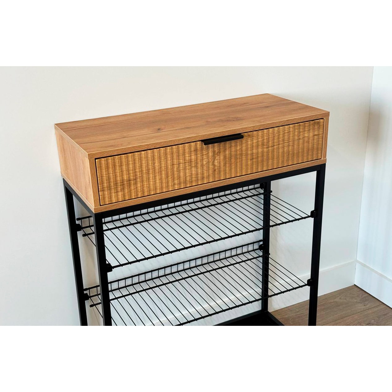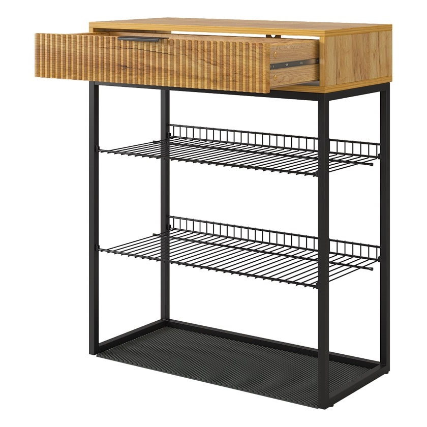 Обувница Вельвет прекрасно сочетает в себе стиль и функциональность. Её дизайн в стиле лофт идеально подходит для современных интерьеров. Выдвижной ящик с шариковыми направляющими обеспечивает бесшумное и плавное открывание, предоставляя удобный доступ к вашим аксессуарам и мелочам. Регулируемые опоры и специальный коврик обеспечивают дополнительный комфорт и защиту.