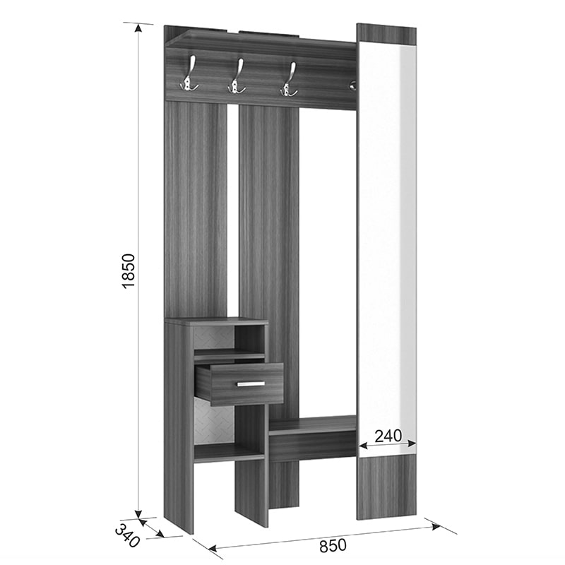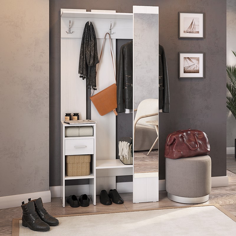 Прихожая Агата создана для тех, кто ценит практичность и красивый дизайн. Её компактные размеры позволяют эффективно использовать пространство даже в небольших помещениях. Продуманный дизайн включает в себя все необходимое для комфортного хранения вашей одежды и аксессуаров.