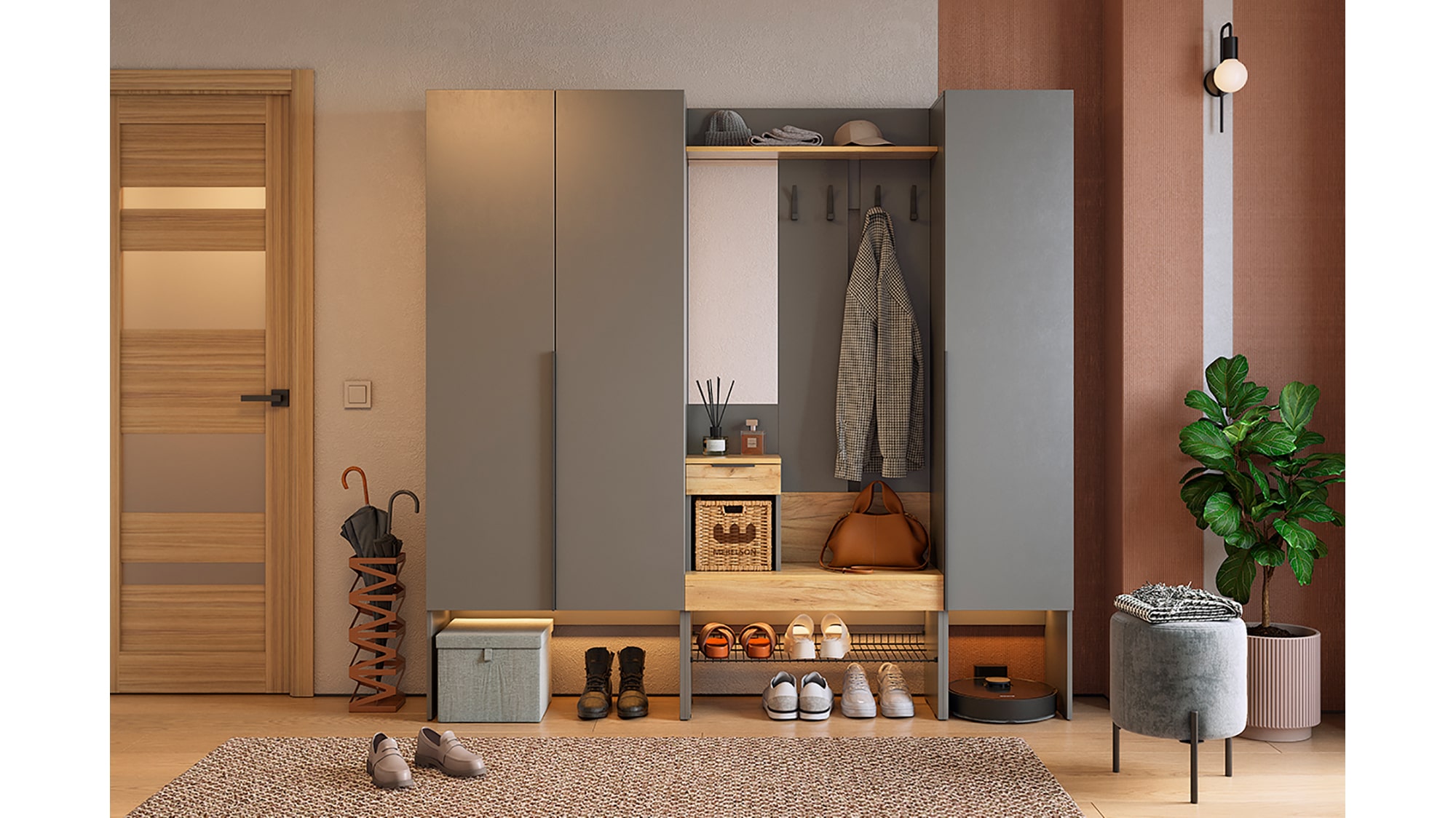 Прихожая "Баско К11" — стильное и функциональное решение для вашего дома. Эта прихожая создана для того, чтобы обеспечить удобство и порядок в вашем входном пространстве.