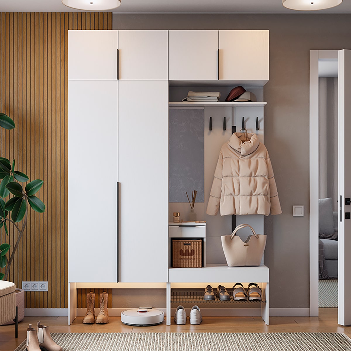 Подсветка для шкафа и прихожей приобретается отдельно.