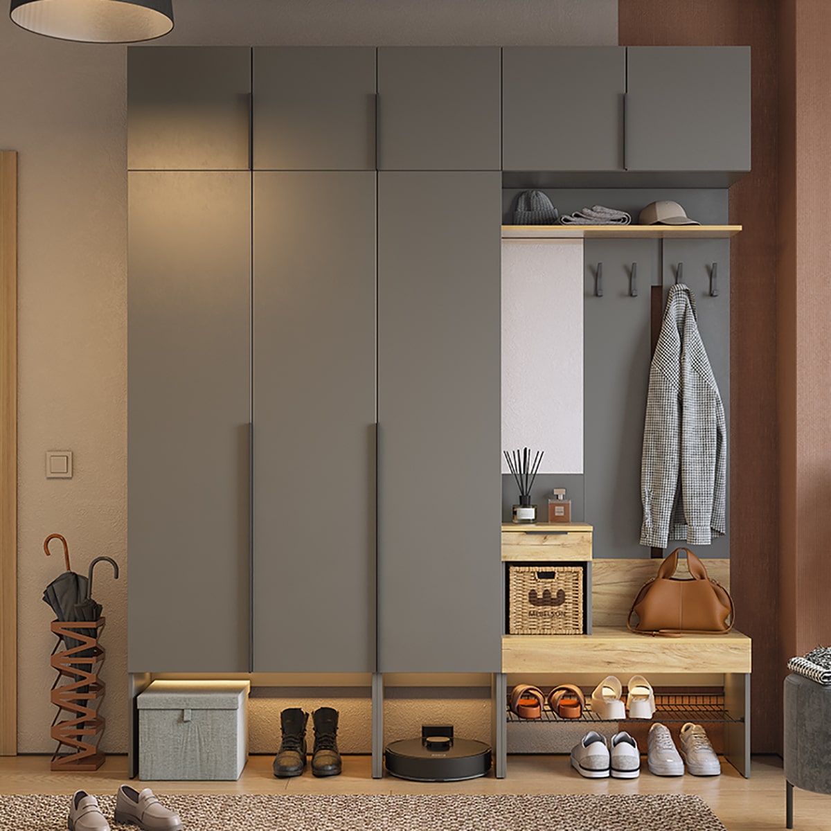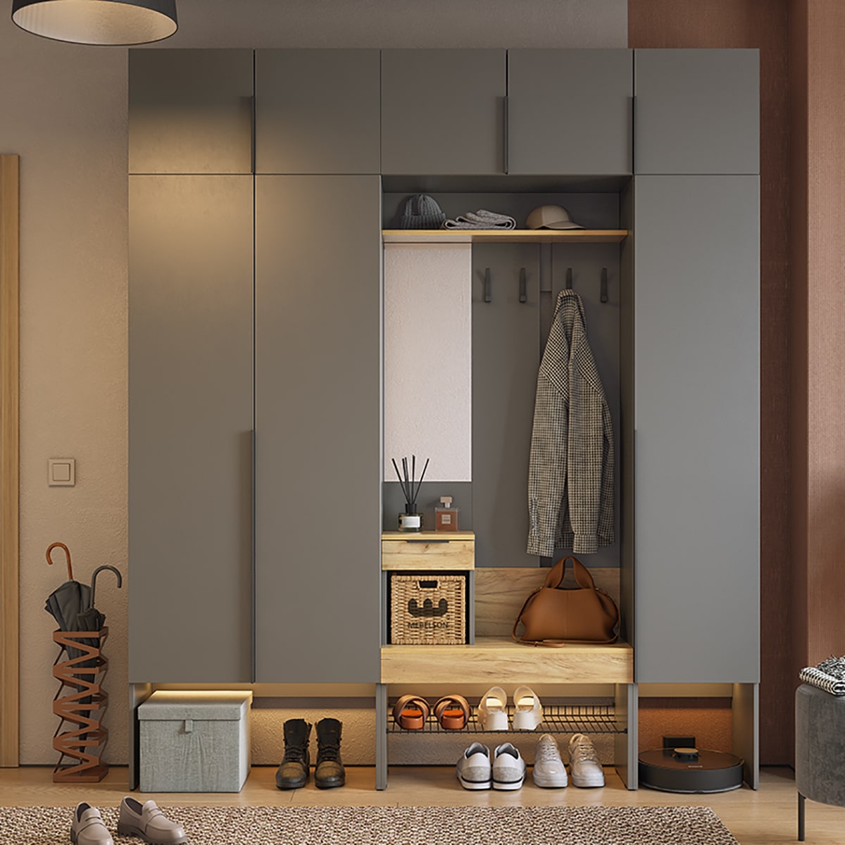 Подсветка для шкафа и прихожей приобретается отдельно.