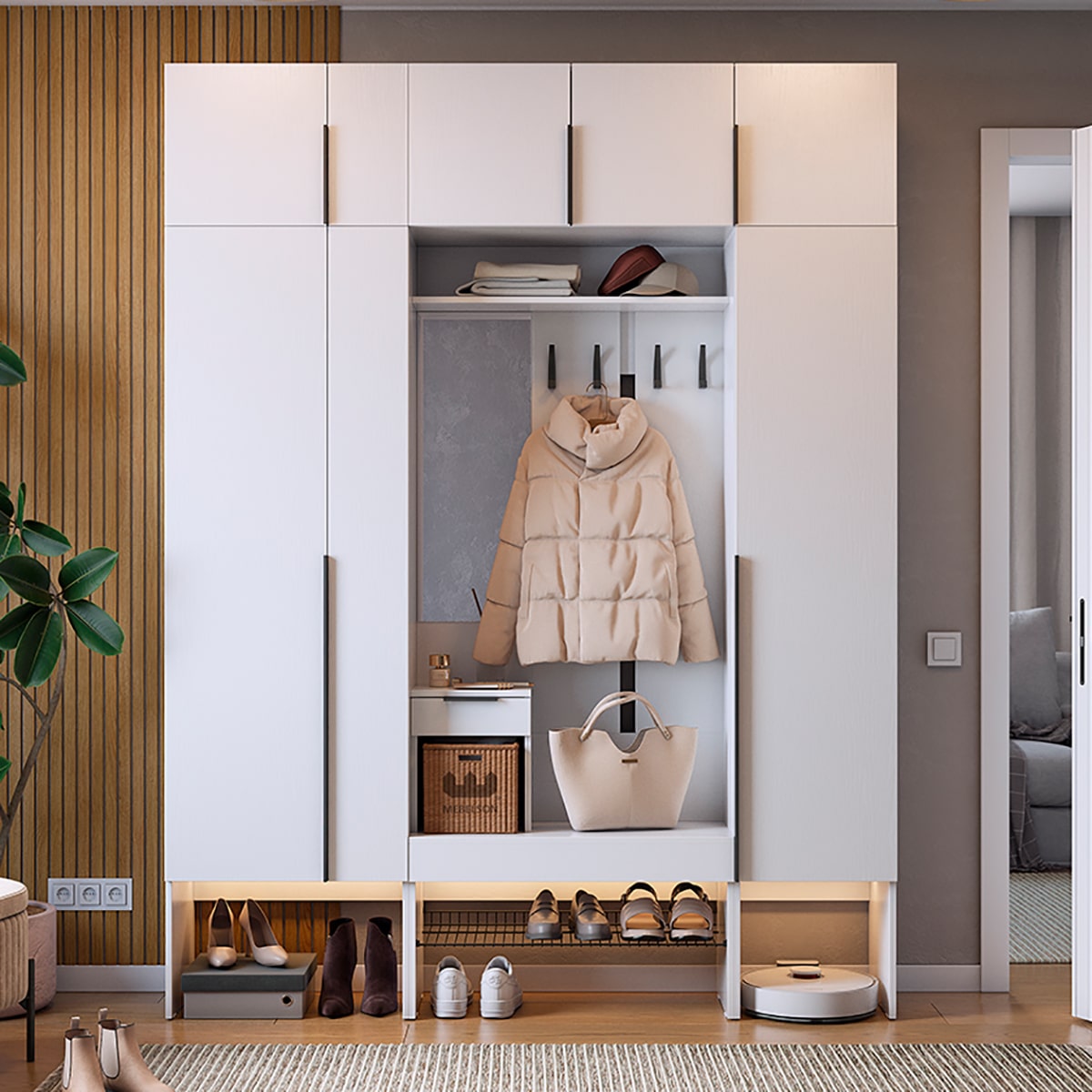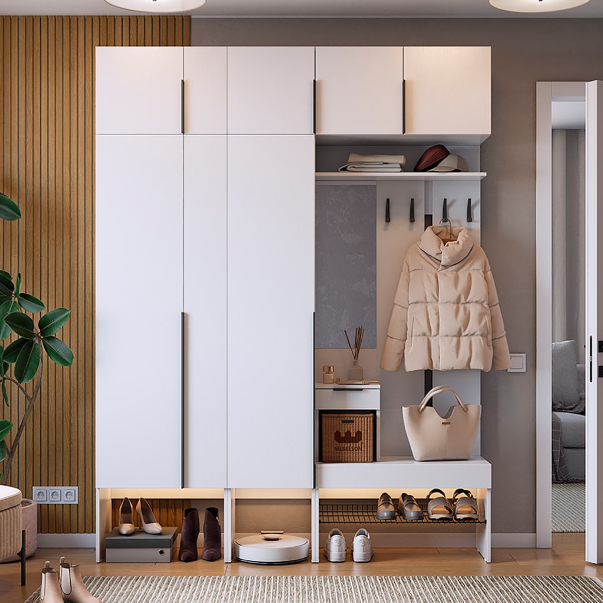 Подсветка для шкафа и прихожей приобретается отдельно.