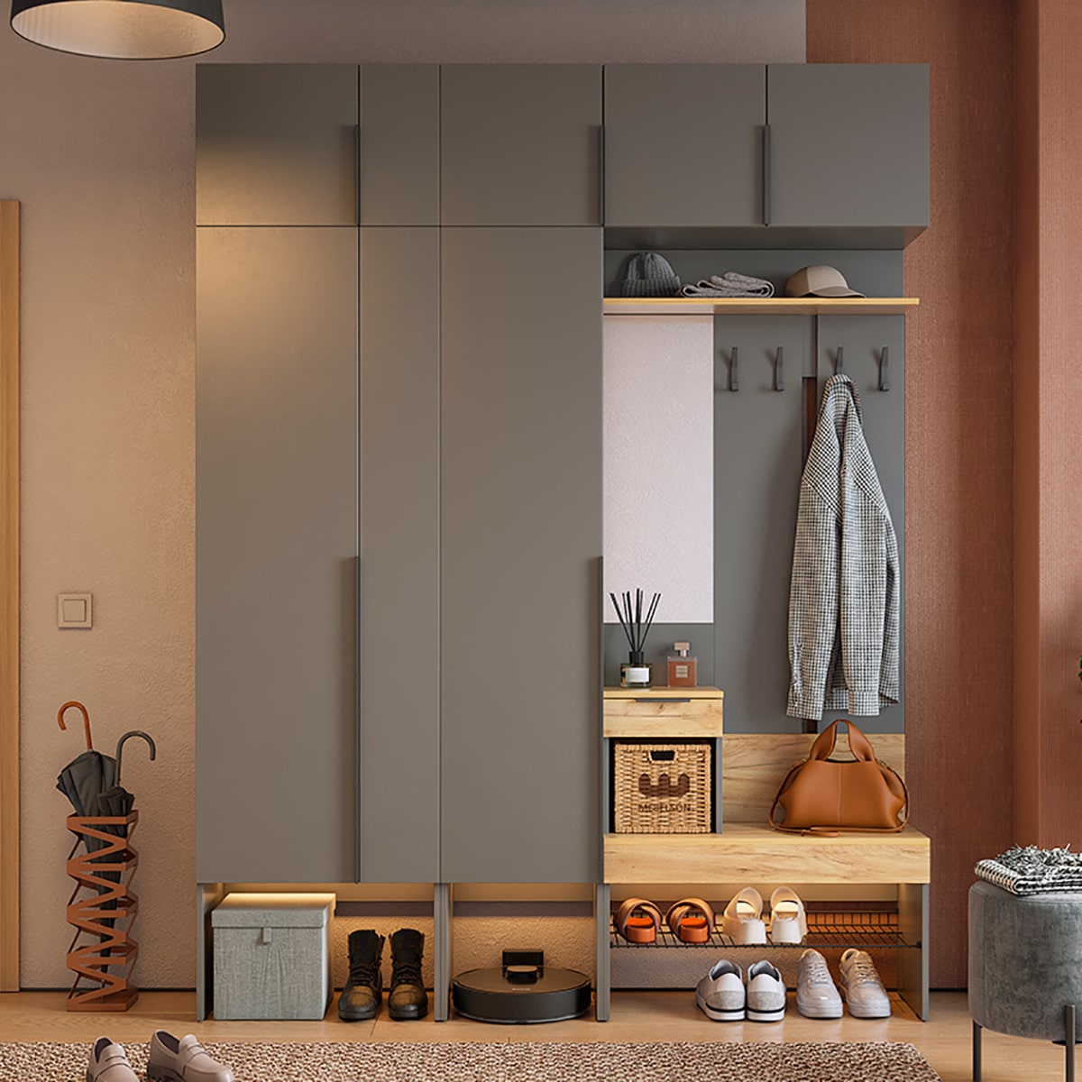Подсветка для шкафа и прихожей приобретается отдельно.