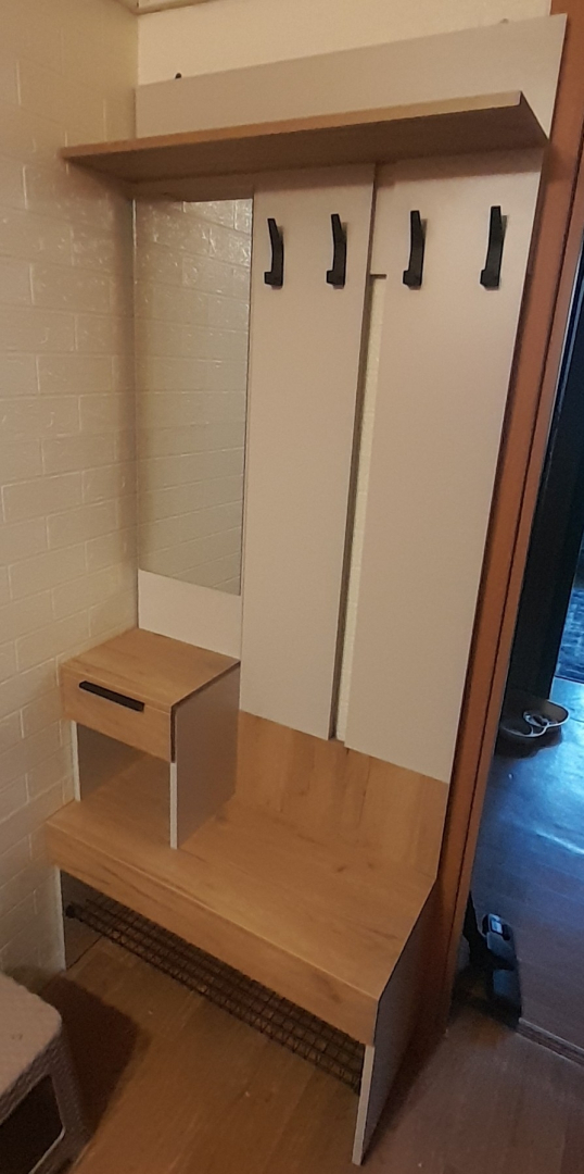 Крючки для одежды обеспечивают удобное место для размещения верхней одежды и аксессуаров, а выкатной ящик предоставляет дополнительное пространство для хранения мелочей. Сетчатая полка для обуви позволяет аккуратно разместить обувь, обеспечивая вентиляцию и легкий доступ.