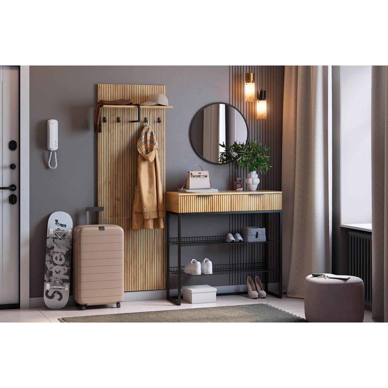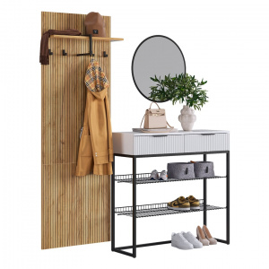 В комплект прихожей входят следующие позиции: Вешалка 1 Бодрум - 1 шт. Обувница Классная 1 - 1 шт. Зеркало Фортуна 1 - 1 шт.