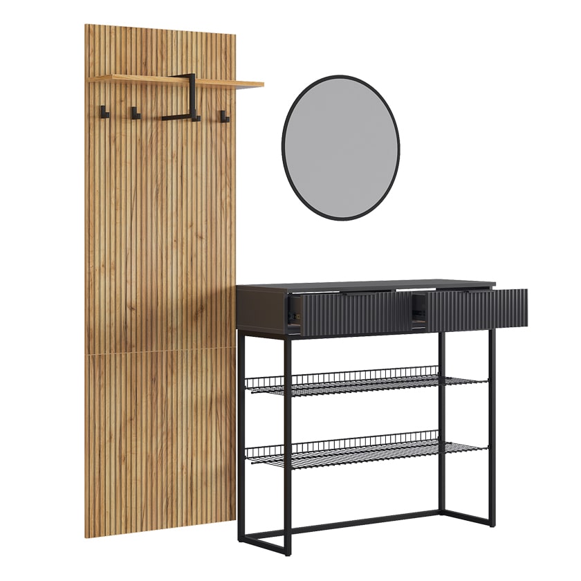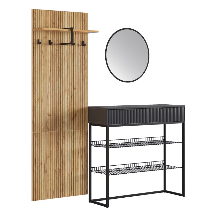 В комплект прихожей входят следующие позиции: Вешалка 1 Бодрум - 1 шт. Обувница Классная 1 - 1 шт. Зеркало Фортуна 1 - 1 шт.
