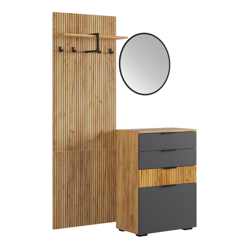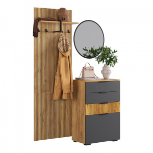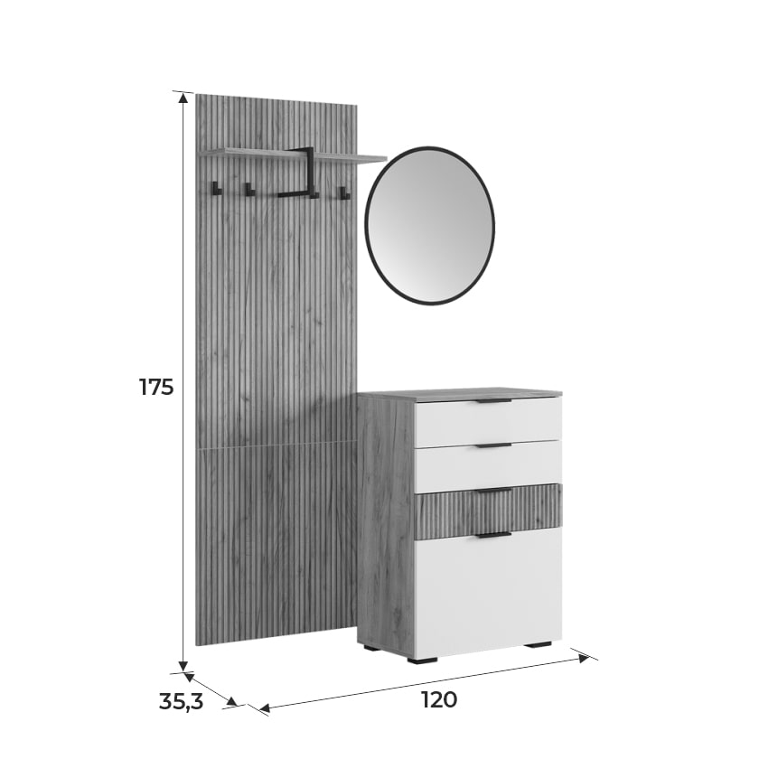 В комплект прихожей входят следующие позиции: Вешалка 1 Бодрум - 1 шт. Бери Комод - 1 шт. Зеркало Фортуна 1 - 1 шт.