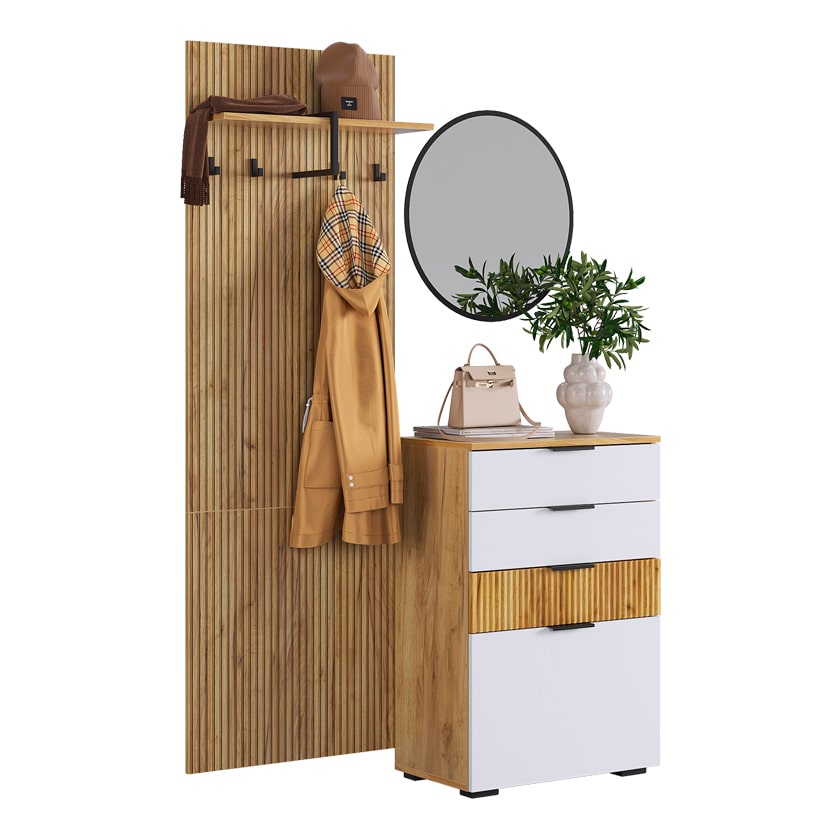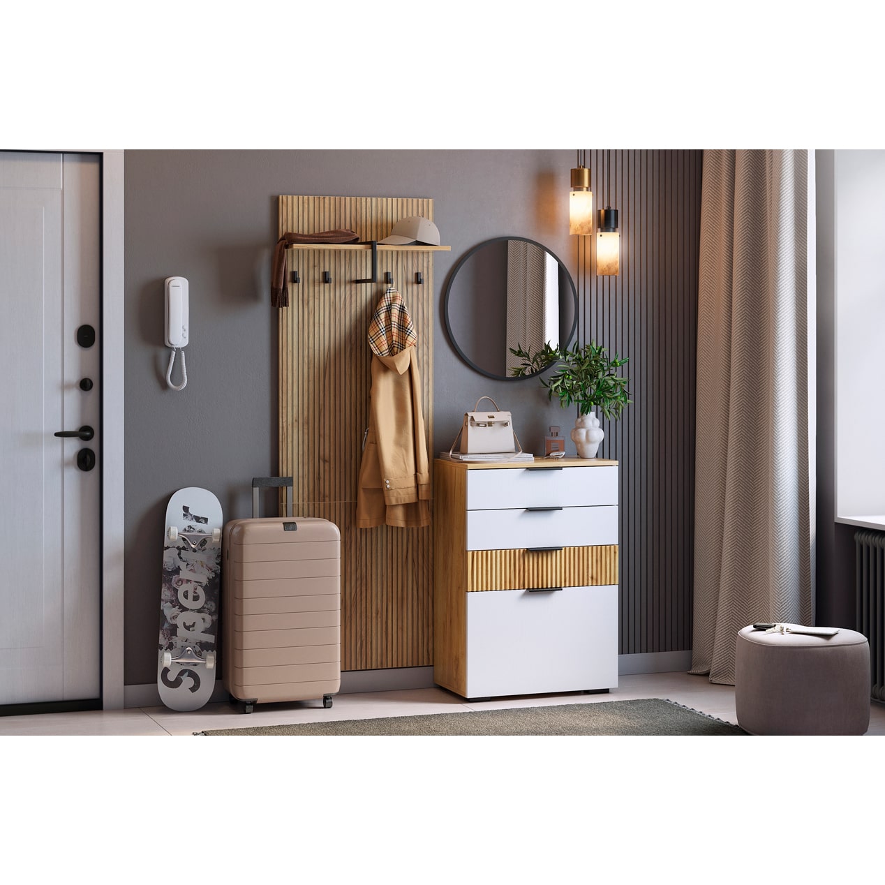 В комплект прихожей входят следующие позиции: Вешалка 1 Бодрум - 1 шт. Бери Комод - 1 шт. Зеркало Фортуна 1 - 1 шт.