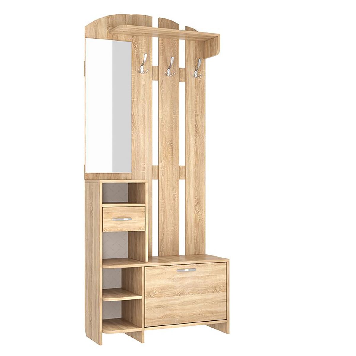 Прихожая Мила идеально подходит для тех, кто ценит компактность, но при этом хочет максимально эффективно использовать пространство. Она обеспечивает удобное размещение одежды, обуви и аксессуаров.