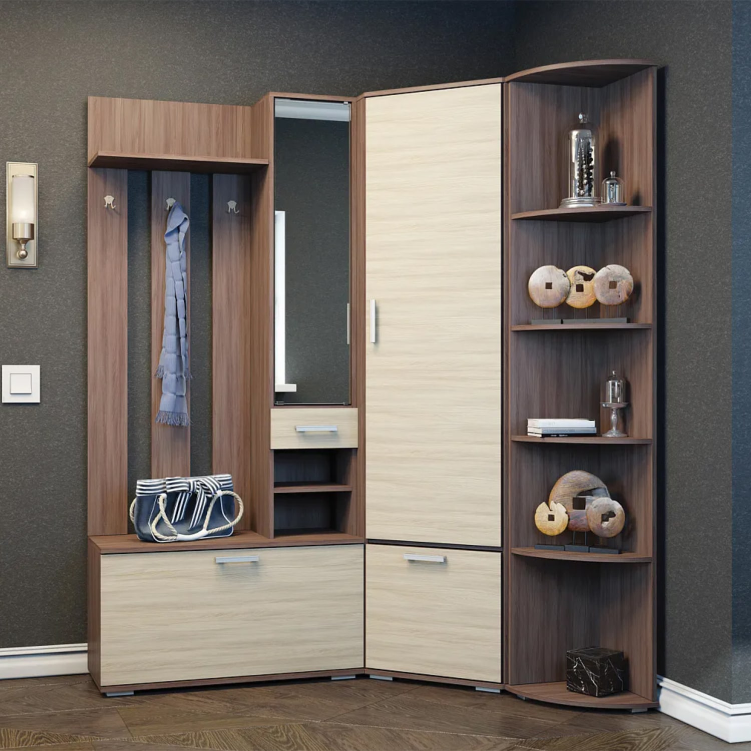 Вешалка-пенал угловая (ву354): 354 (Ш) Х 2032 (В) Х 354 (Г) мм