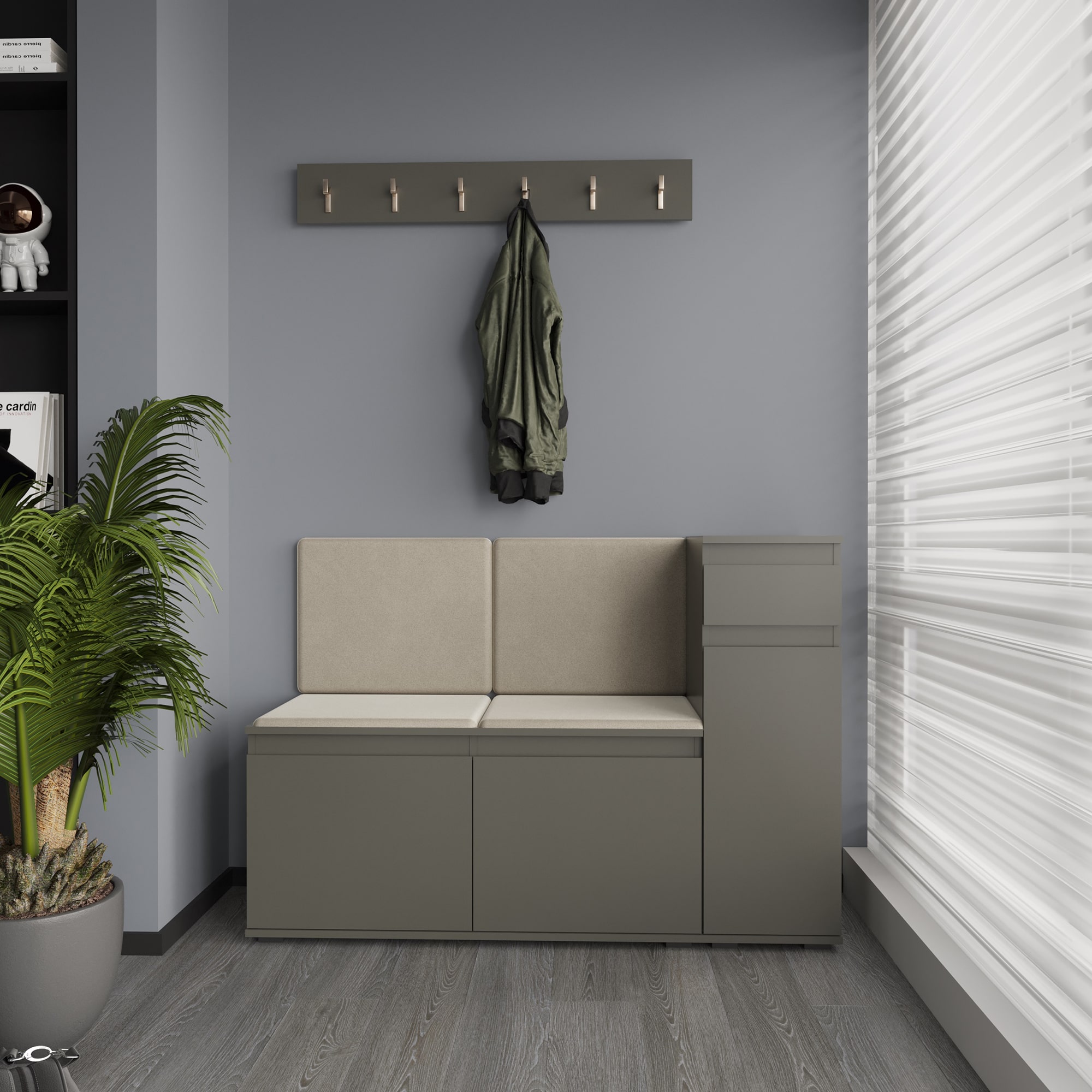Главной фишкой прихожей, являются декоративные мягкие панели, для отделки боковин и стен, которые позволят украсить минималистичный интерьер прихожей и придать этой зоне комфорта и стиля.