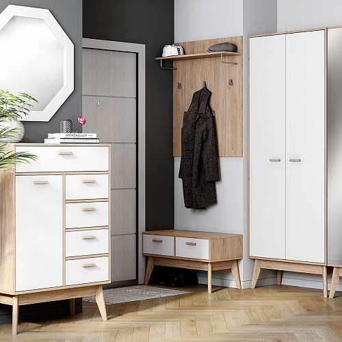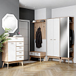 Прихожая "Калгари" выполнена в полюбившемся многими скандинавском стиле. Основной тон белый, именно он отвечает за визуальное увеличение пространства, поэтому прихожая будет выглядеть светло и уютно, просторно будет даже при небольшой площади.