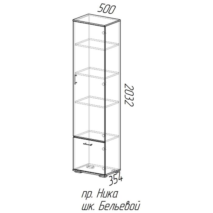 Шкаф бельевой (шб500): 500 (Ш) Х 2032 (В) Х 354 (Г)