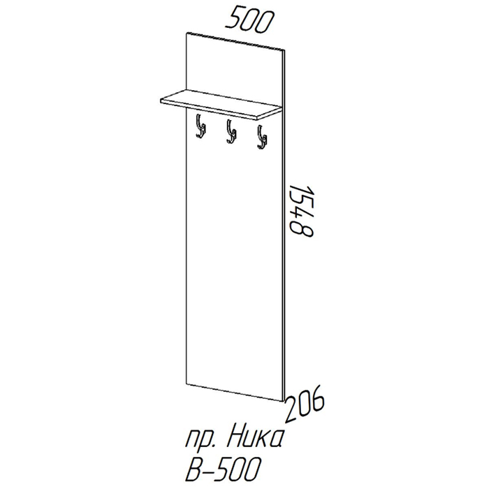 Вешалка (в500): 500 (Ш) Х 1550 (В) Х 200 (Г) мм
