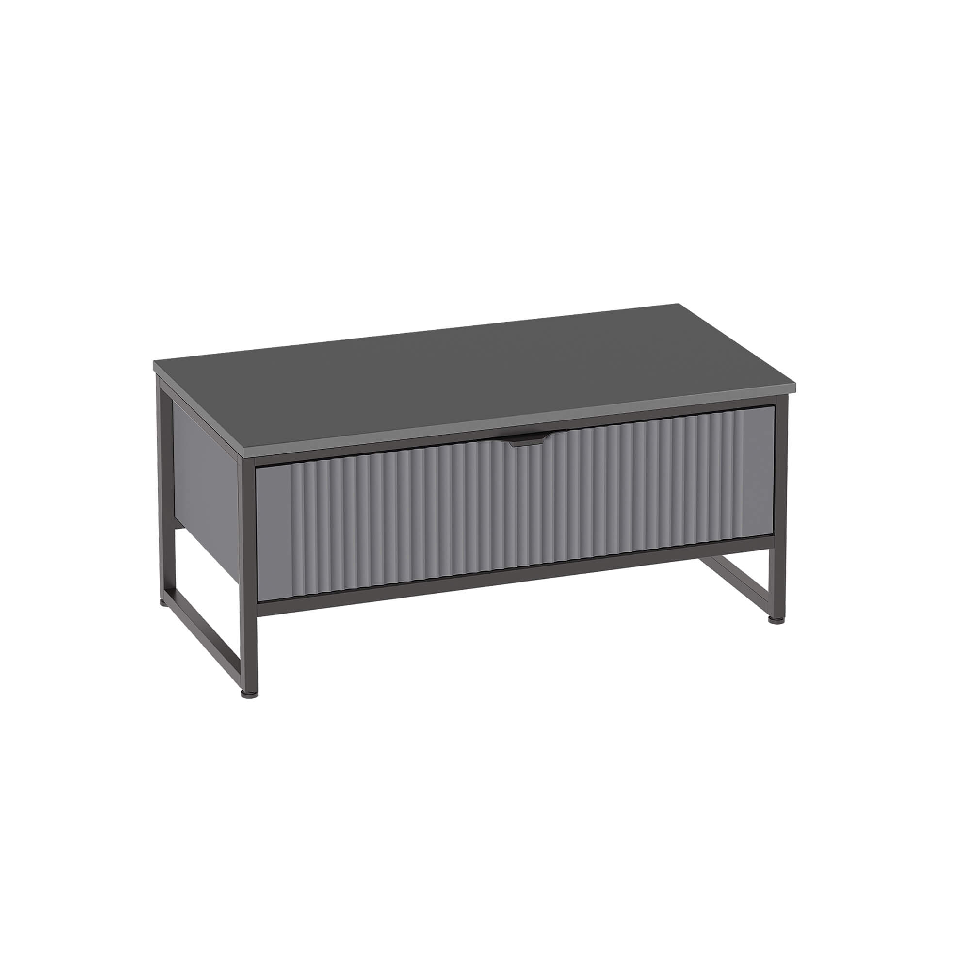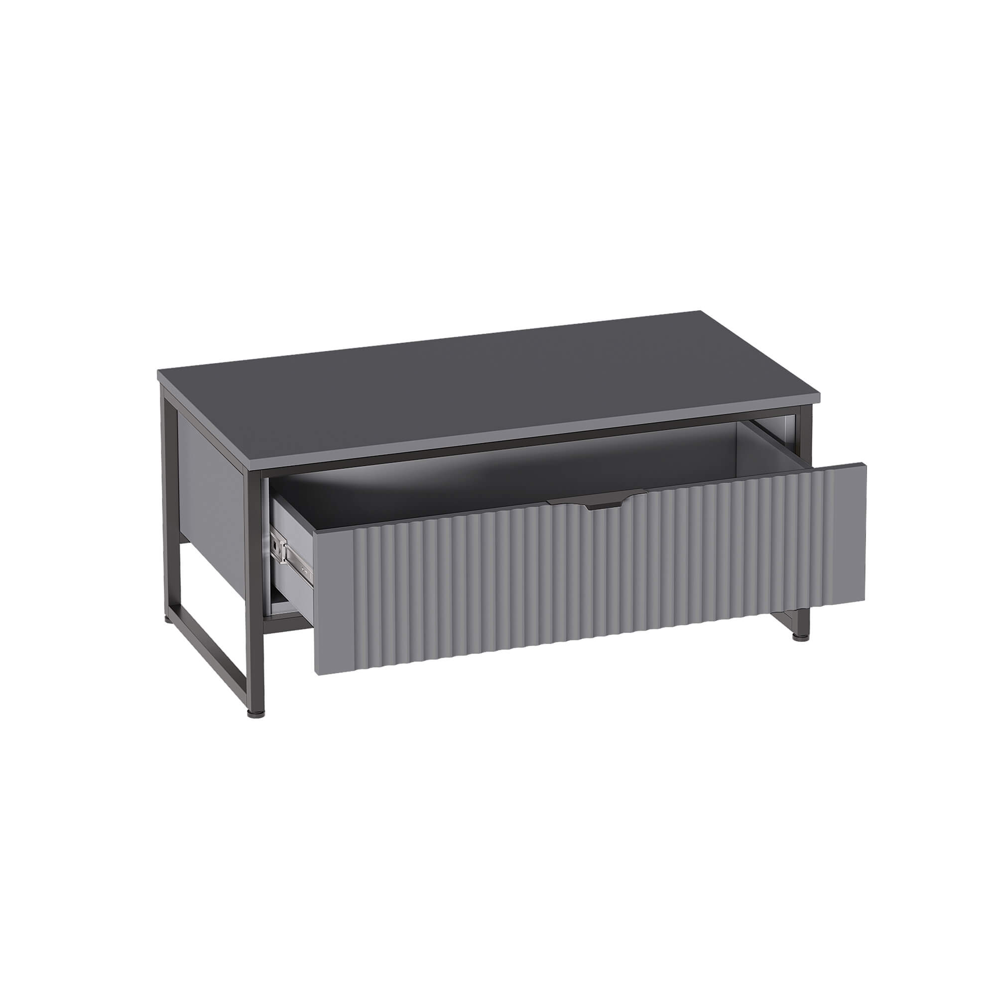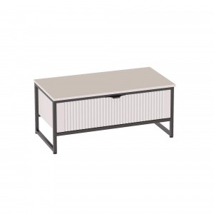 Тумба состоит из несущего металлического каркаса и закрепленного к нему корпуса из ЛДСП, внутри которого установлен выдвижной ящик на шариковых направляющих с доводчиками.