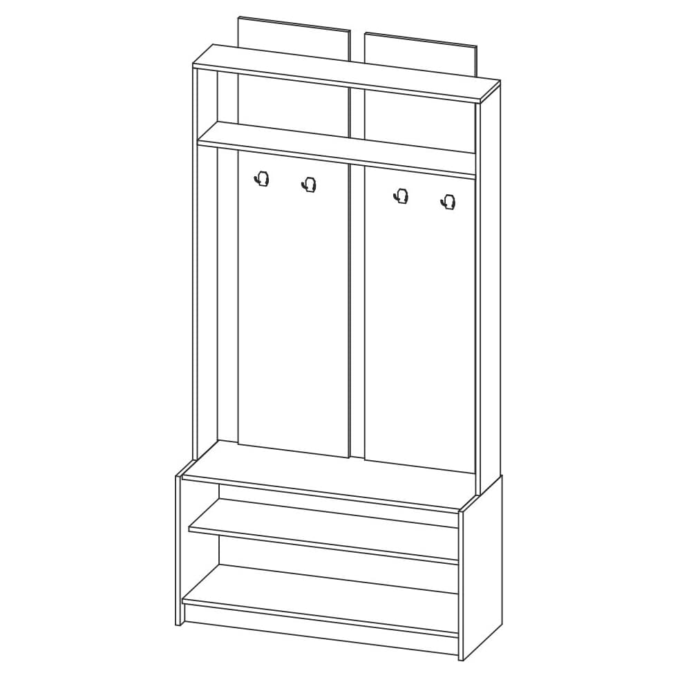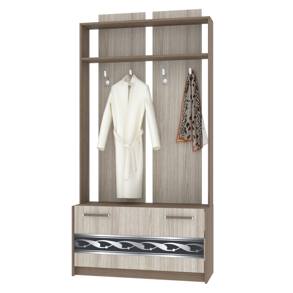 Вешалка Марица - это практичный и стильный модуль для хранения одежды. Она имеет просторную вешалку, которая позволяет разместить большое количество одежды, а также  тумбу с полками для хранения аксессуаров и обуви. Этот модуль идеально подходит для тех, кто ценит порядок и комфорт в своем гардеробе.