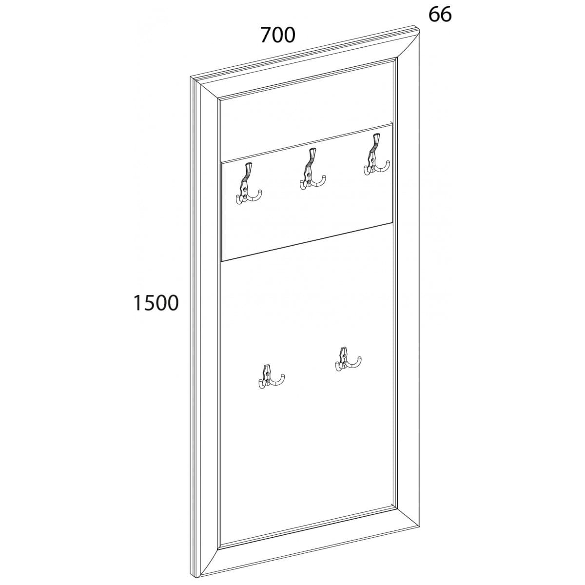 Вешалка Оливия является неотъемлемой частью интерьера любой прихожей. Вешалка Оливия компактна и практична в использовании, не занимает полезное свободное пространство, комбинируется с тумбой Оливия 1S по ширине (ш700). Может крепится на любой удобной высоте. Представляет собой плиту из ЛДСП, на которой располагаются металлические крючки для одежды в два ряда – верхний ряд (три крючка), нижний ряд (два крючка – для размещения детской верхней одежды либо других предметов).