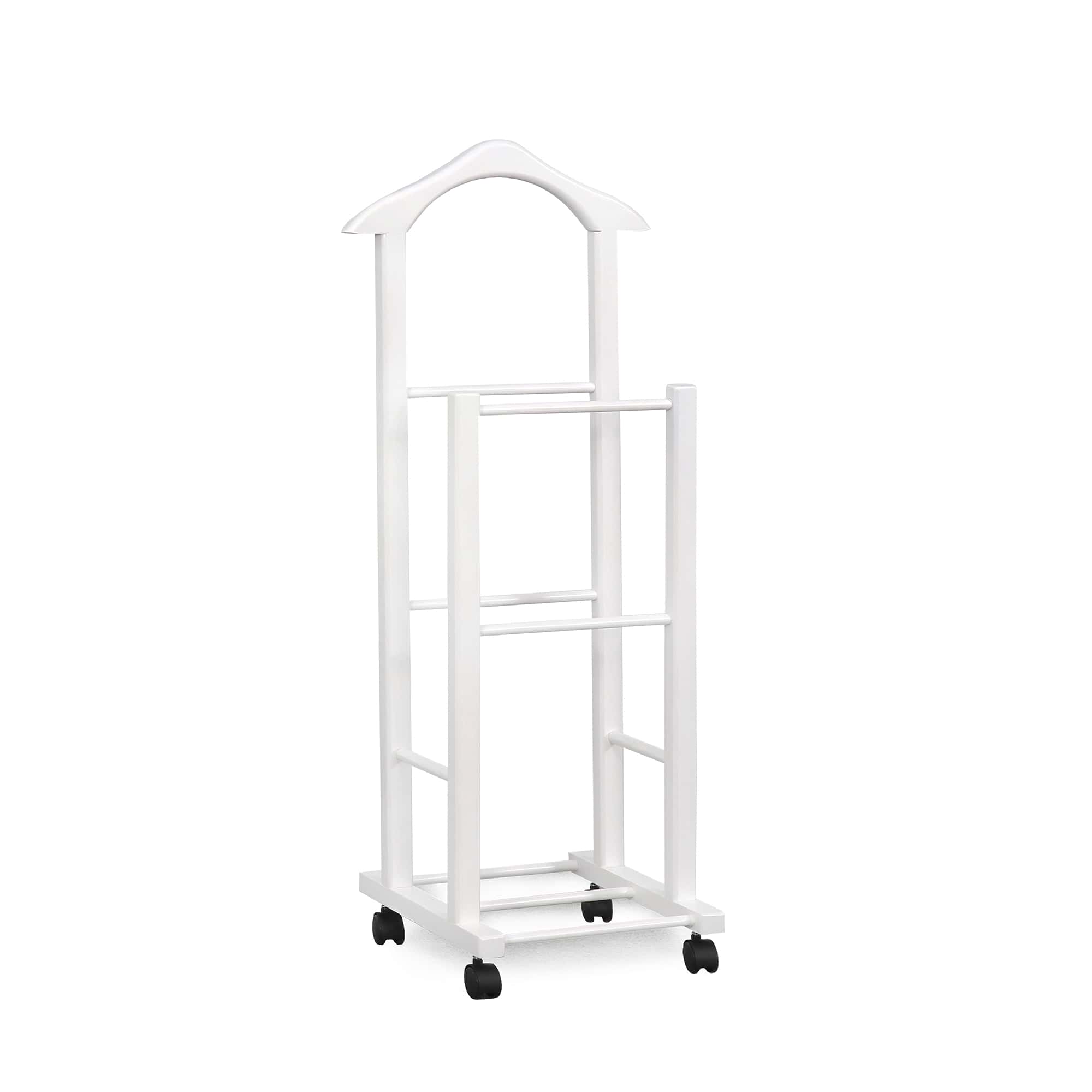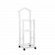 Более высокая стойка высотой почти метр и шириной почти полметра имеет закруглённую верхнюю планку. Такая форма удобна для навешивания одежды с рукавами, а габариты вешалки позволяют размещать наряды даже очень крупных пользователей. На нижней планке удобно расположить брюки и юбки.