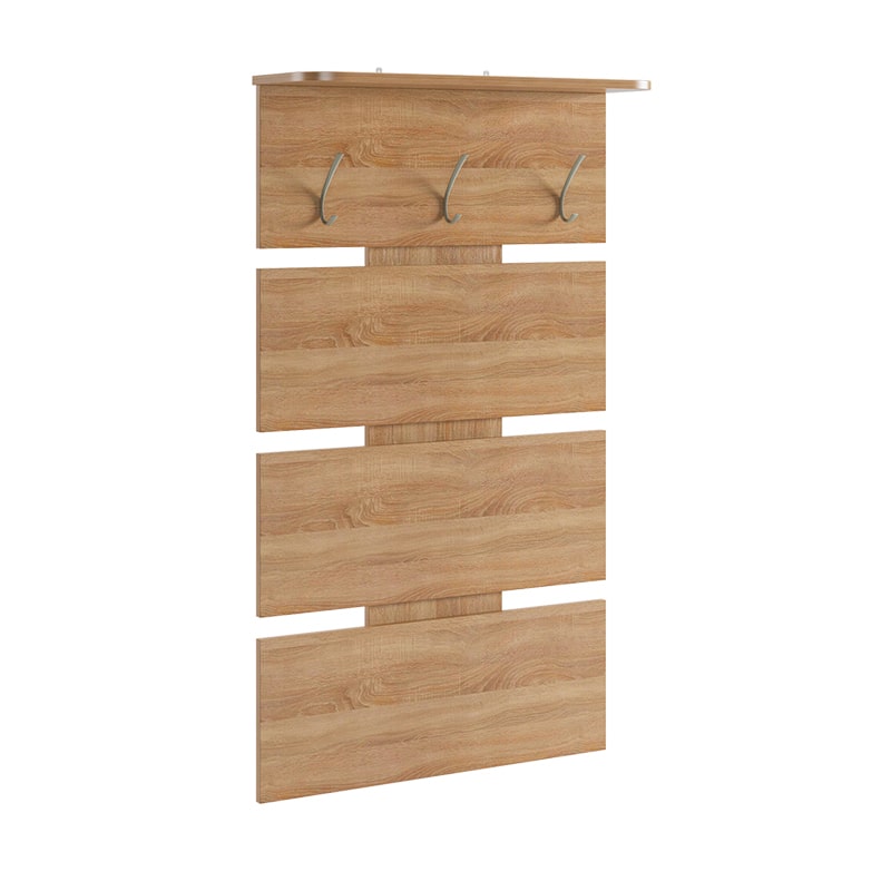 Вешалка Реал 2 - это прекрасное решение для малогабаритных пространств. Отсутствие избыточных деталей и симметричный дизайн делают ее универсальной и адаптируемой к любому интерьеру. На вешалке предусмотрены металлические крючки, которые идеально подойдут для размещения верхней одежды и сумок. Полка сверху предназначена для удобного хранения головных уборов.