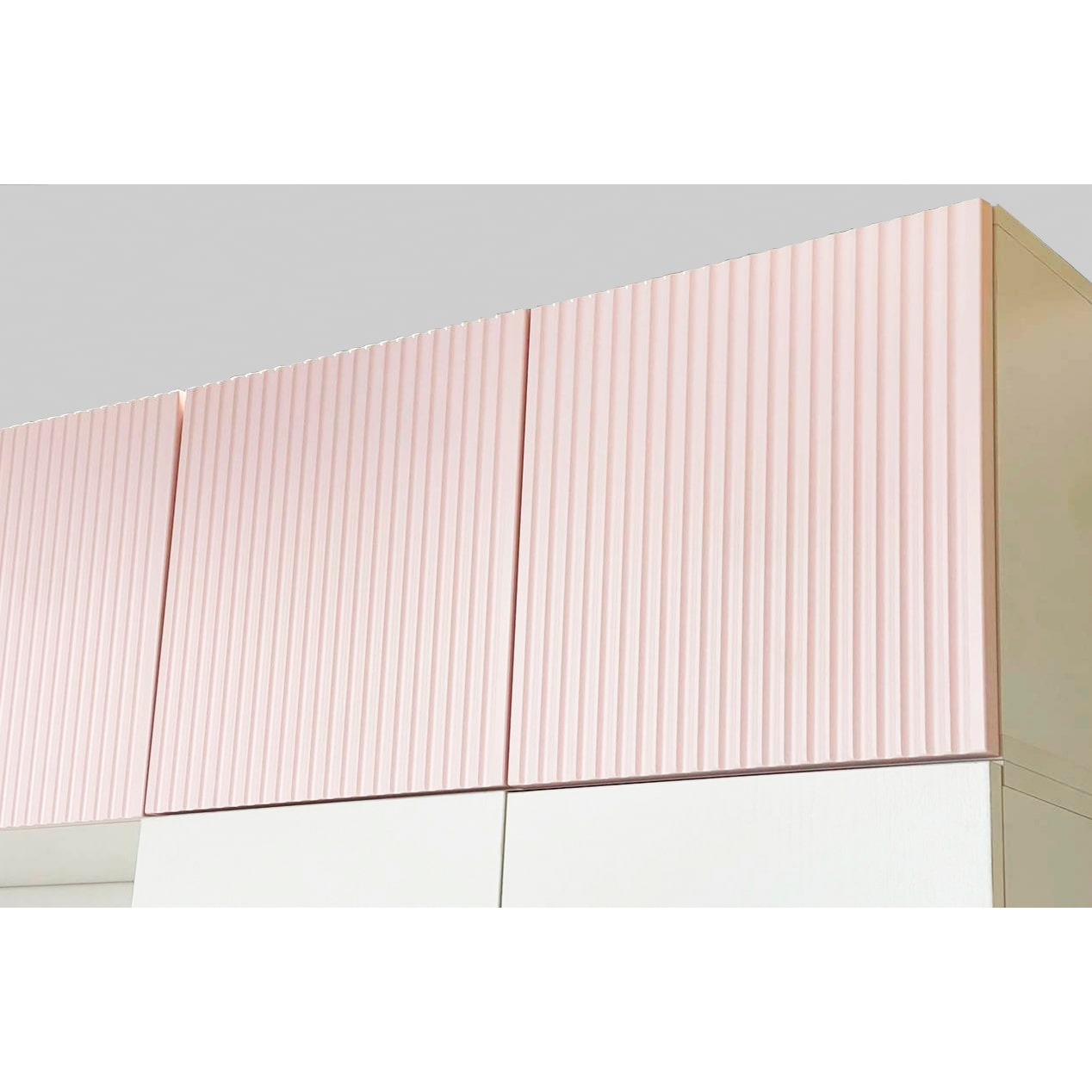 Мы использовали высококачественные материалы для создания этого шкафа. Корпус изготовлен из ламинированного ЛДСП в белом дереве, а фасады выполнены из МДФ в эмалевом покрытии. На фасаде фрезеровка в виде полос, придающей модели изысканный вид.