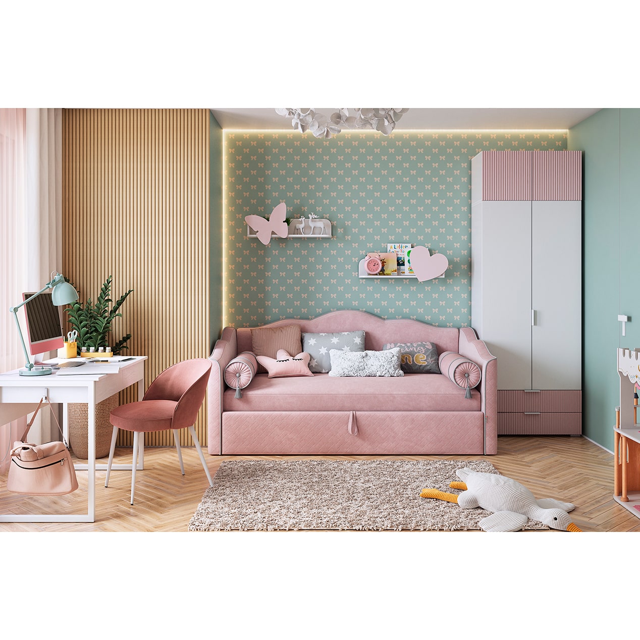 Антресоль двухдверная Зефир 118.01 белое дерево/пудра розовая (эмаль)