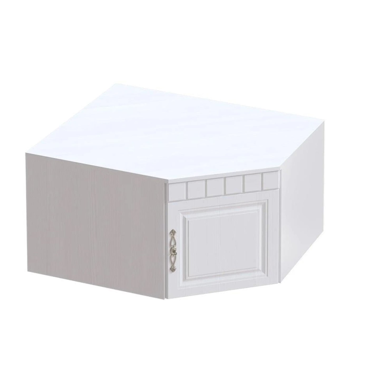 Антресоль угловая - глубина 910 мм, ширина 910 мм, высота 480 мм. За распашной дверью расположена ниша для вещей. Дверь монтируется на любую сторону антресоли. Антресоль ставится на угловой шкаф и крепится к нему межсекционными стяжками.