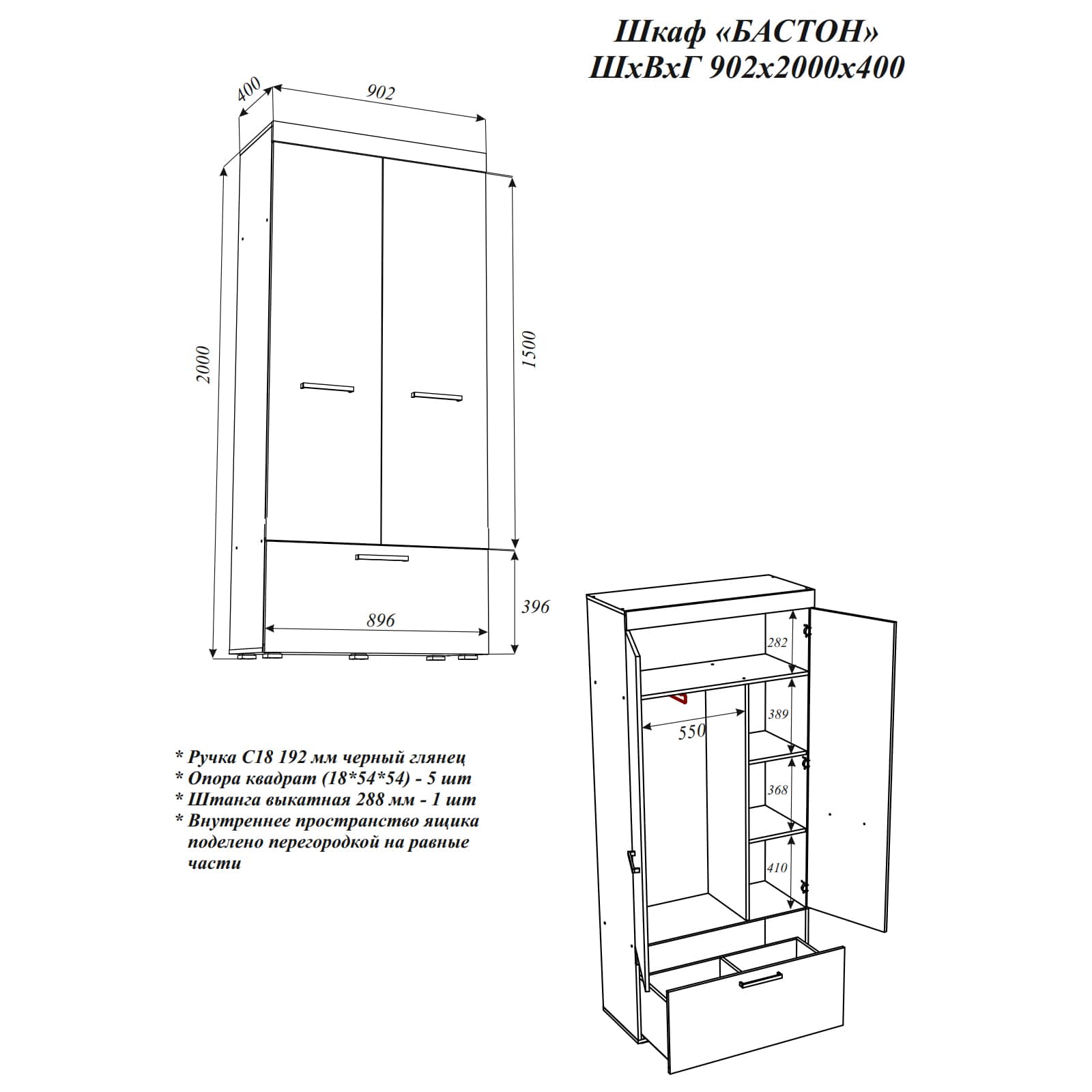 Шкаф “Бастон” - идеальное решение для создания стильного и функционального интерьера. Этот шкаф станет настоящим украшением вашей комнаты, а его вместительность позволит хранить все необходимые вещи в порядке. Благодаря своей компактности, шкаф не займет много места, но при этом обеспечит вам достаточно пространства для хранения одежды, обуви и аксессуаров.