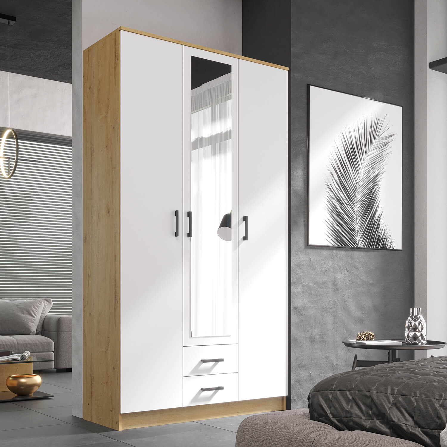 Шкаф ЭРА ТРИО Дуб вотан/белый гладкий - это современное и функциональное решение для хранения одежды и мелких предметов в вашем доме.