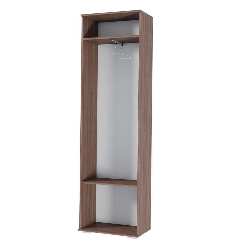 Шкаф оснащен распашными дверями, что обеспечивает удобный доступ к содержимому. Внутри шкафа расположена штанга для вешалок, на которой можно разместить верхнюю одежду, а также две полки для хранения аксессуаров и обуви.