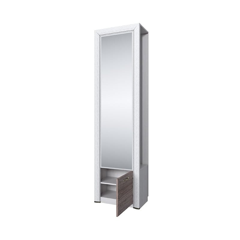 Удобное расположение вещей должно начинаться с порога, а именно – с прихожей. Шкаф Оливия 1DZ имеет оригинальный дизайн и даёт возможность организовать практичную прихожую, даже с минимальным набором элементов. Шкаф 1DZ – прямой. Имеет одно отделение для хранения верхней одежды, в котором отсутствуют боковые стенки корпуса для удобного и быстрого размещения одежды, и одно отделение с большой нишей за глухой дверью (1D), зеркало.